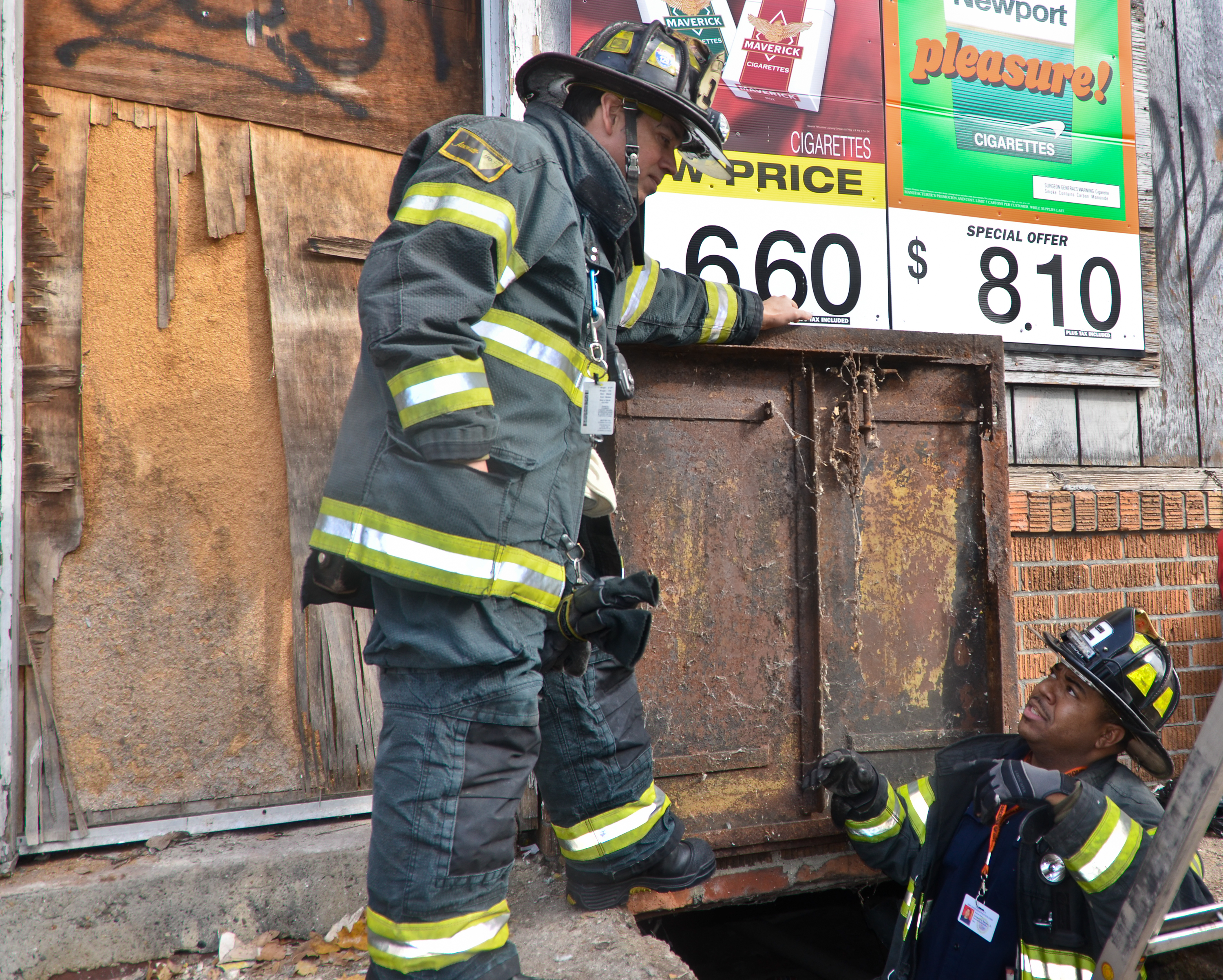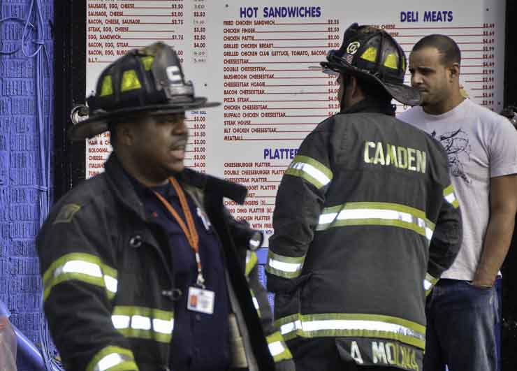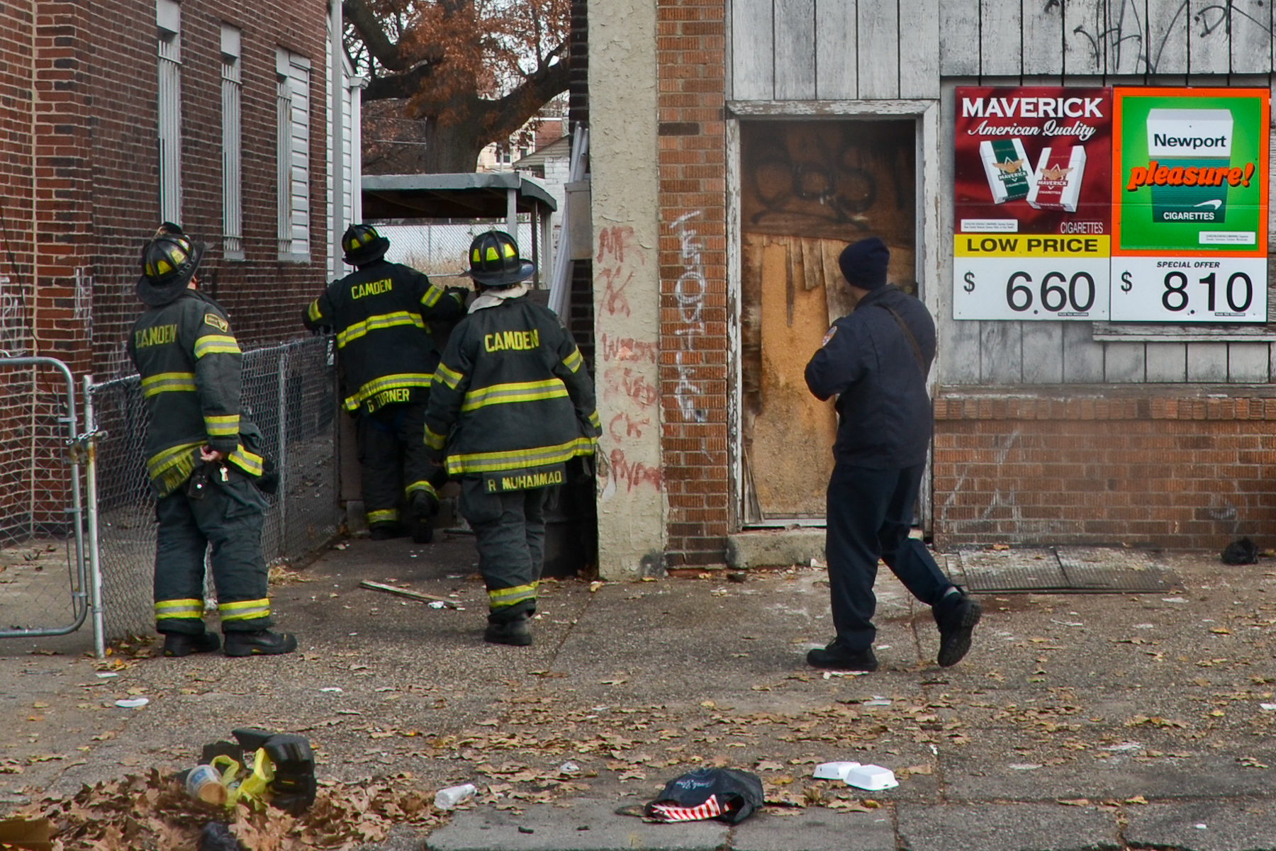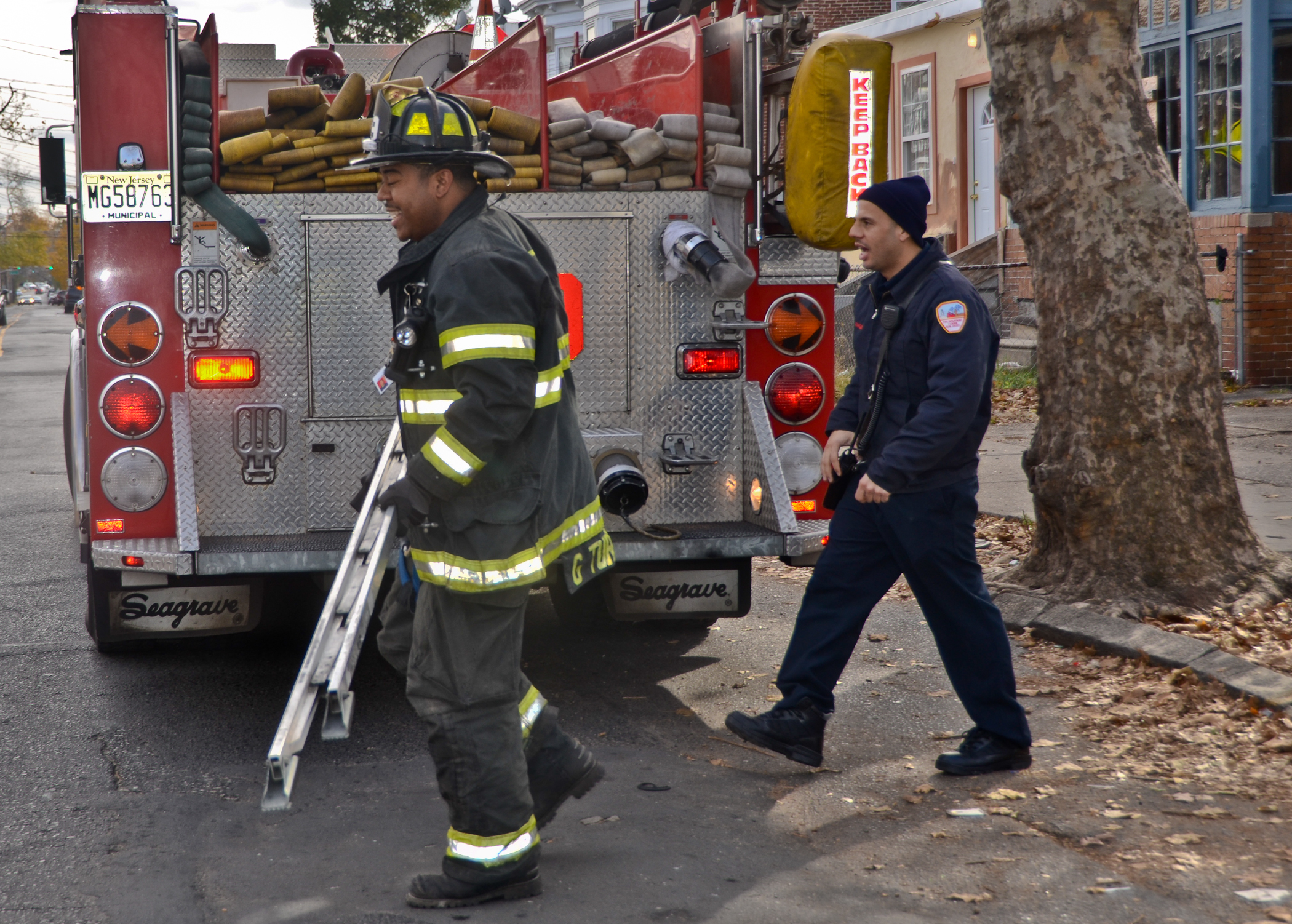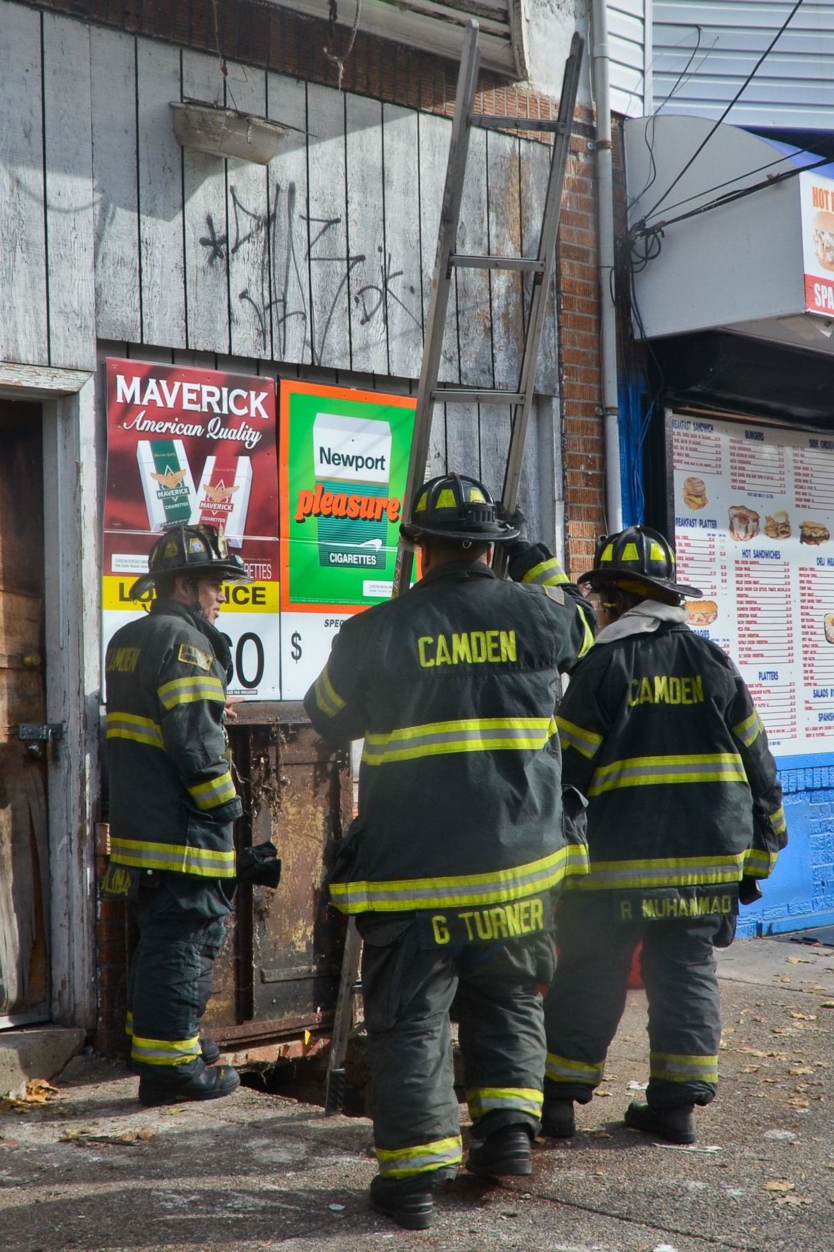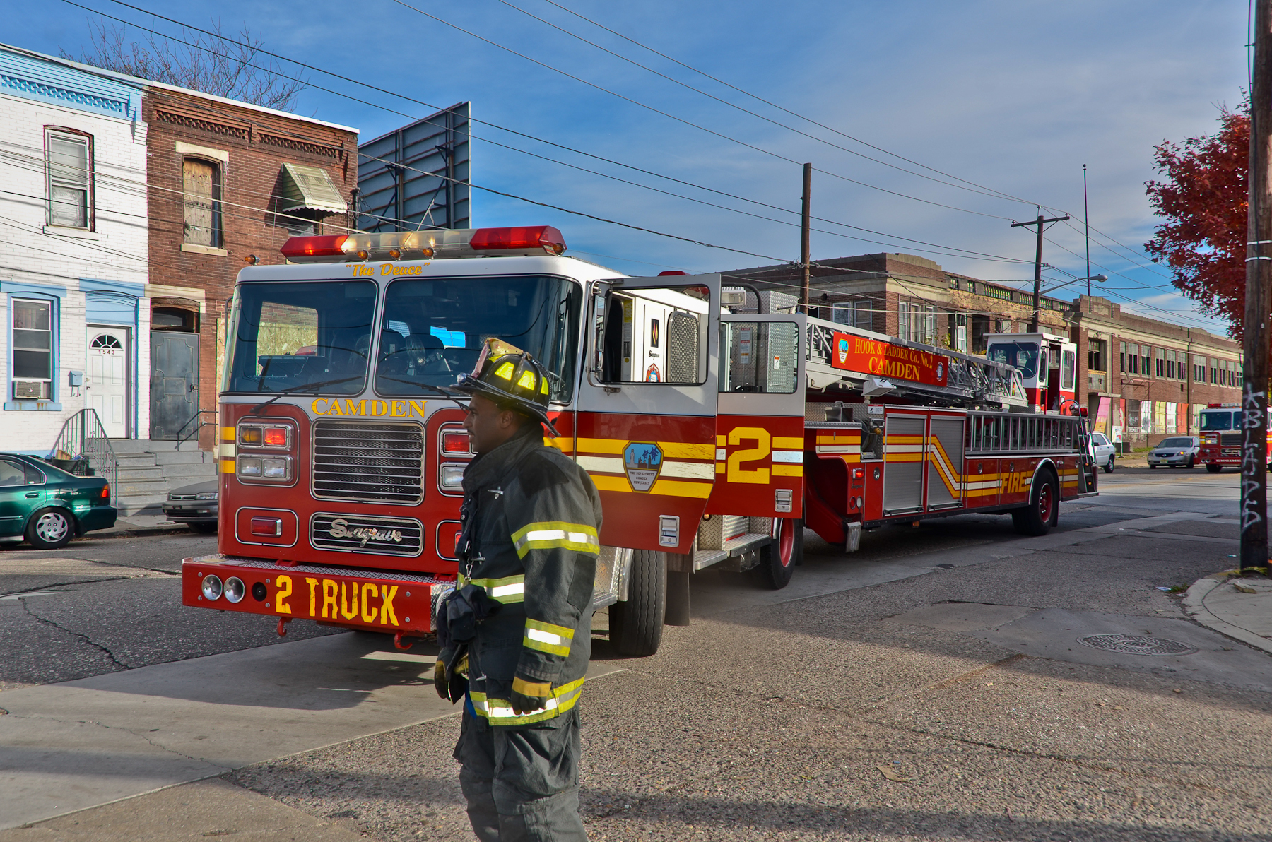 This page and the other pages in this series are the successors to the series of web-page about the Camden Fire Department that began with the page Camden Fire Department: The Fires of the Summer of 2011. On this and other pages in the series you will find pictures and information regarding different events and aspects of the fire service in Camden, New Jersey. I spent some time in the city, and caught up with three runs. #1 A staff member of the Cathedral Kitchen on Federal Street, a facility whose misguided sense of priories has contributed mightily to the destruction of Camden by squatters and metal thieves, left the gas valve open on a stove the night before. The gas was turned of and the building was ventilated in short order. I stopped at Fire Headquarters after getting a few shots of this… and took a couple of pictures while I was there, too! #2 A CO detector malfunction at South 8th and Newton Avenue #3 Engine 9 investigated a reported gas leak coming from a vacant store-front building on South 27th Street. Apparently metal thieves had hit the building, stealing pipes in the basement. As with the web page covering other Camden Fire Department events, if you can identify anyone that I've missed, please comment at the bottom of the page. (I'm terrible at at names and faces). January 15, 2013 |