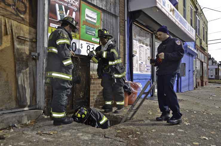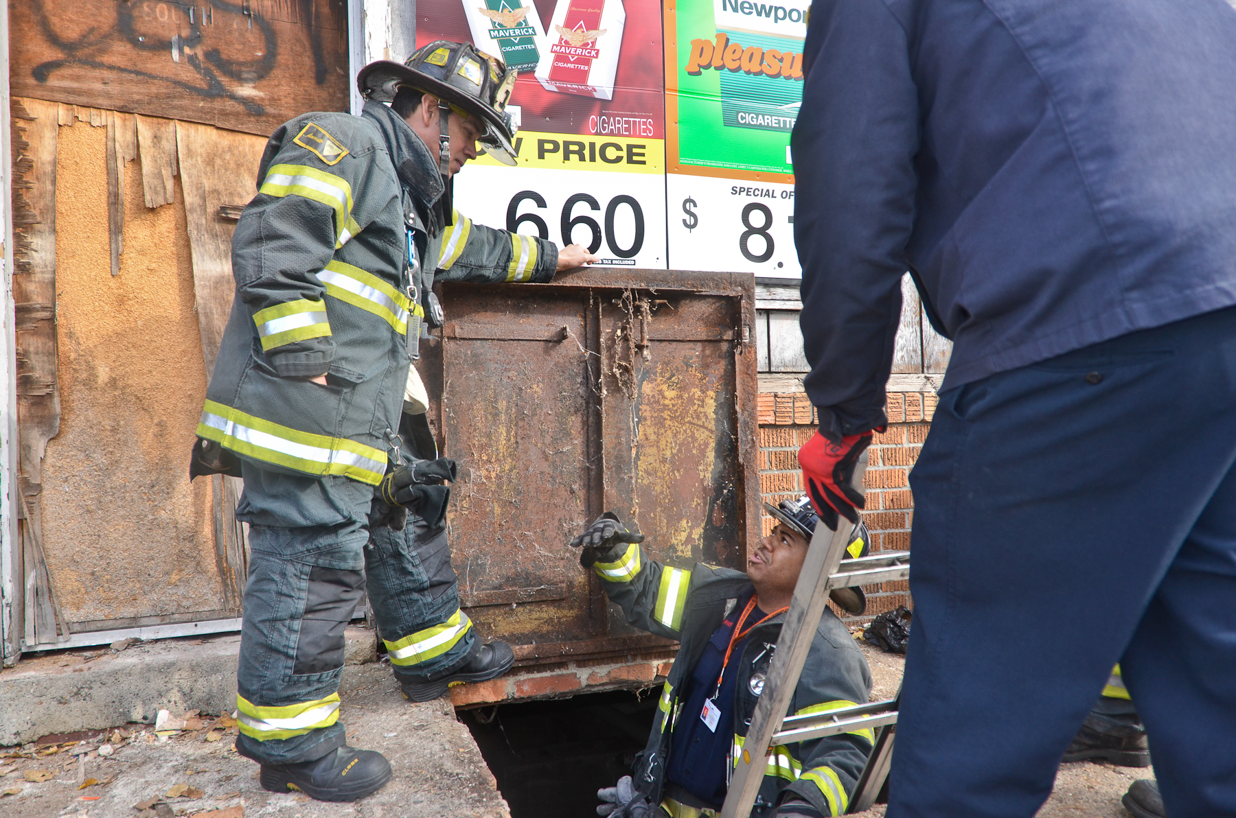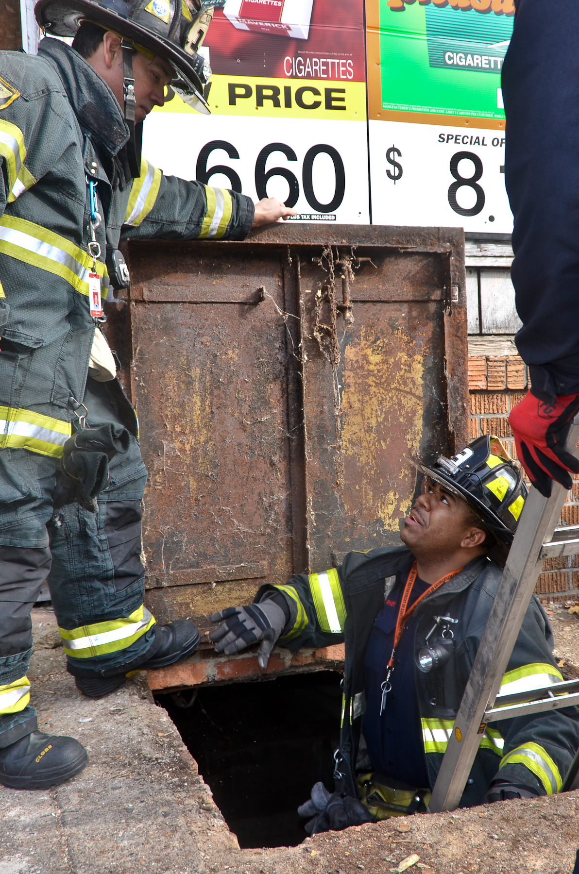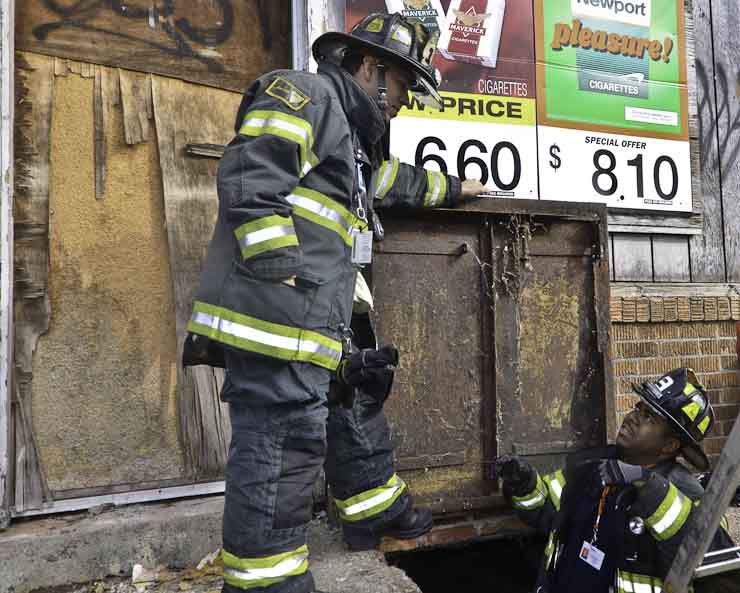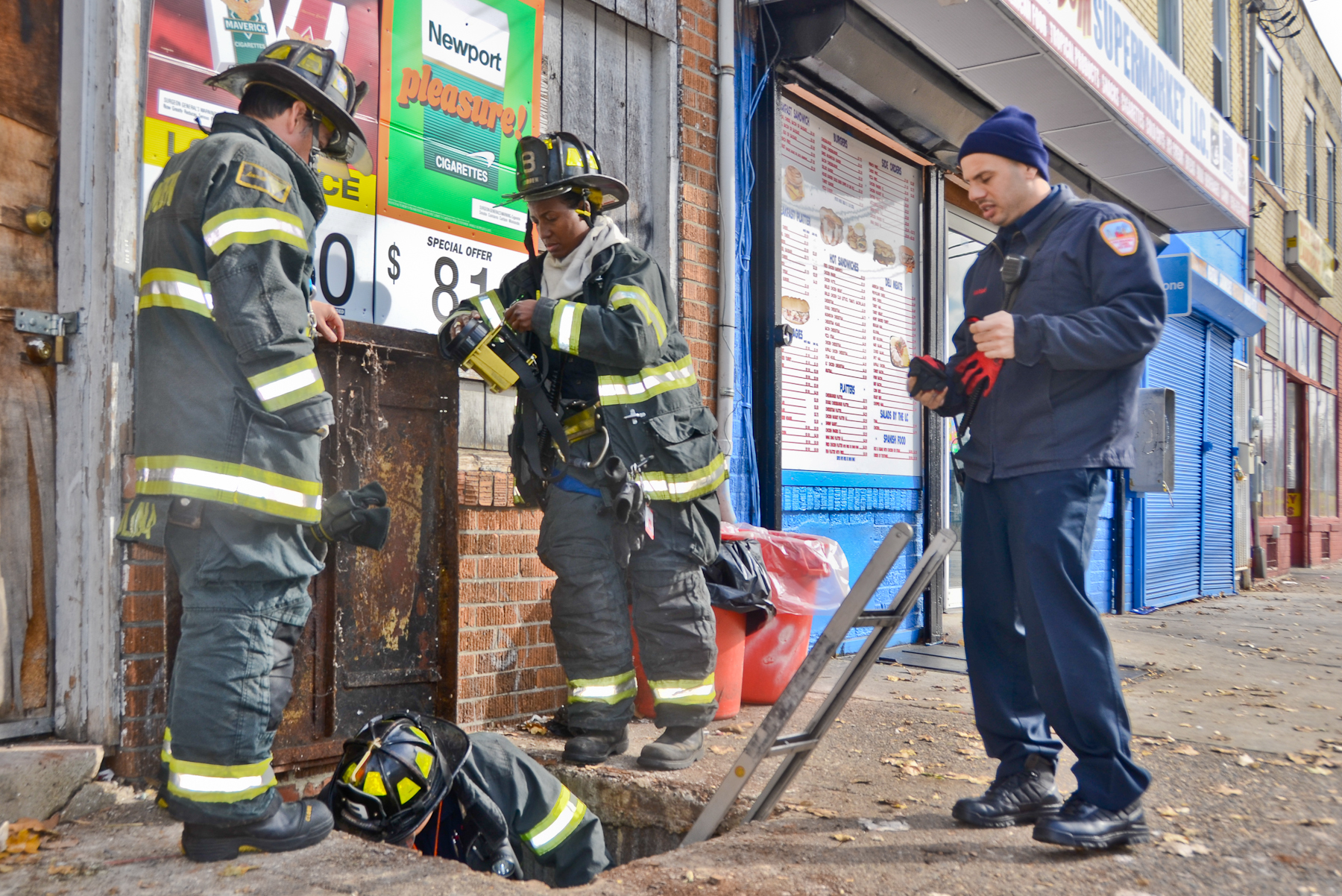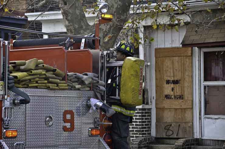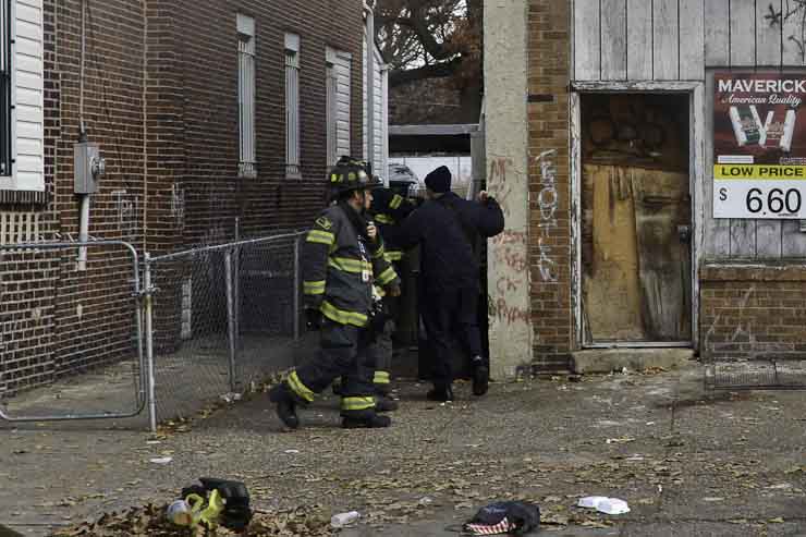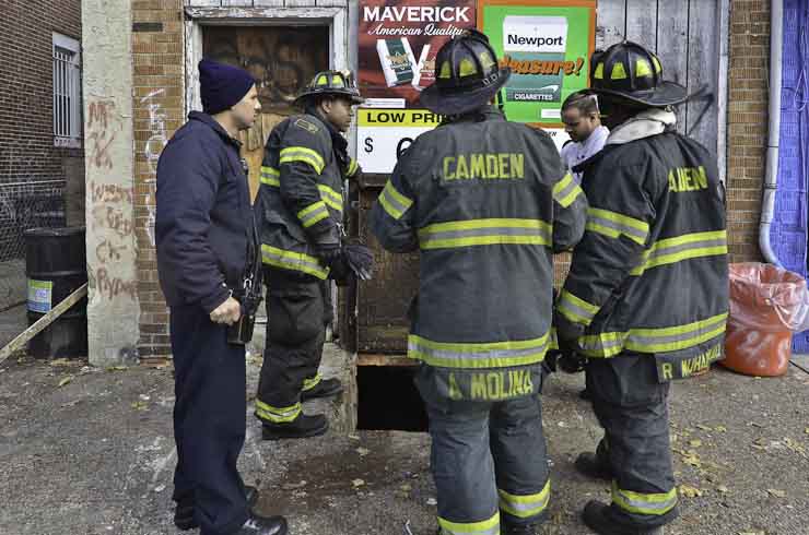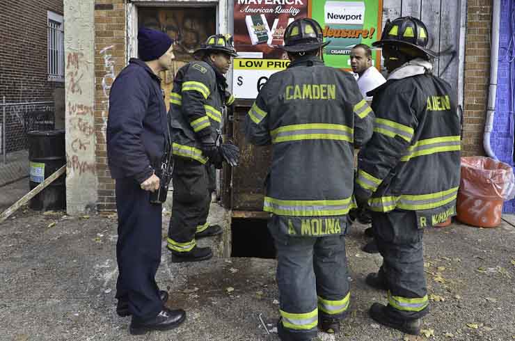 This page and the other pages in this series are the successors to the series of web-page about the Camden Fire Department that began with the page Camden Fire Department: The Fires of the Summer of 2011. On this and other pages in the series you will find pictures and information regarding different events and aspects of the fire service in Camden, New Jersey. I spent some time in the city, and caught up with three runs. #1 A staff member of the Cathedral Kitchen on Federal Street, a facility whose misguided sense of priories has contributed mightily to the destruction of Camden by squatters and metal thieves, left the gas valve open on a stove the night before. The gas was turned of and the building was ventilated in short order. I stopped at Fire Headquarters after getting a few shots of this… and took a couple of pictures while I was there, too! #2 A CO detector malfunction at South 8th and Newton Avenue #3 Engine 9 investigated a reported gas leak coming from a vacant store-front building on South 27th Street. Apparently metal thieves had hit the building, stealing pipes in the basement. As with the web page covering other Camden Fire Department events, if you can identify anyone that I've missed, please comment at the bottom of the page. (I'm terrible at at names and faces). January 15, 2013 |