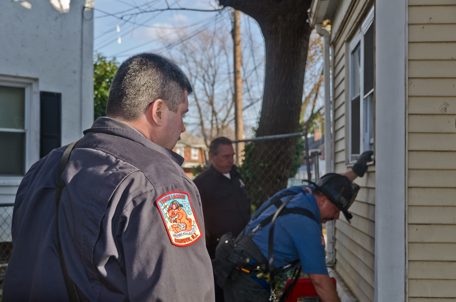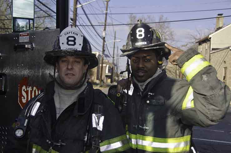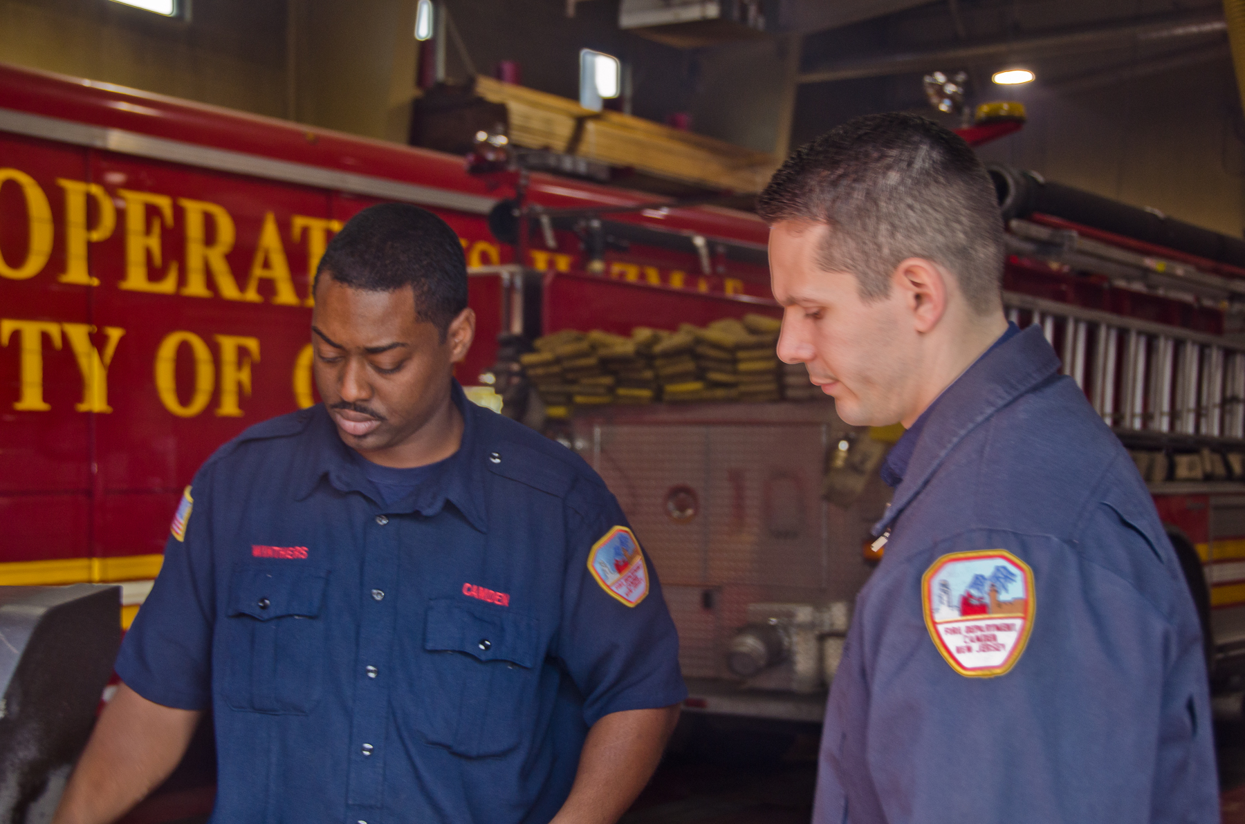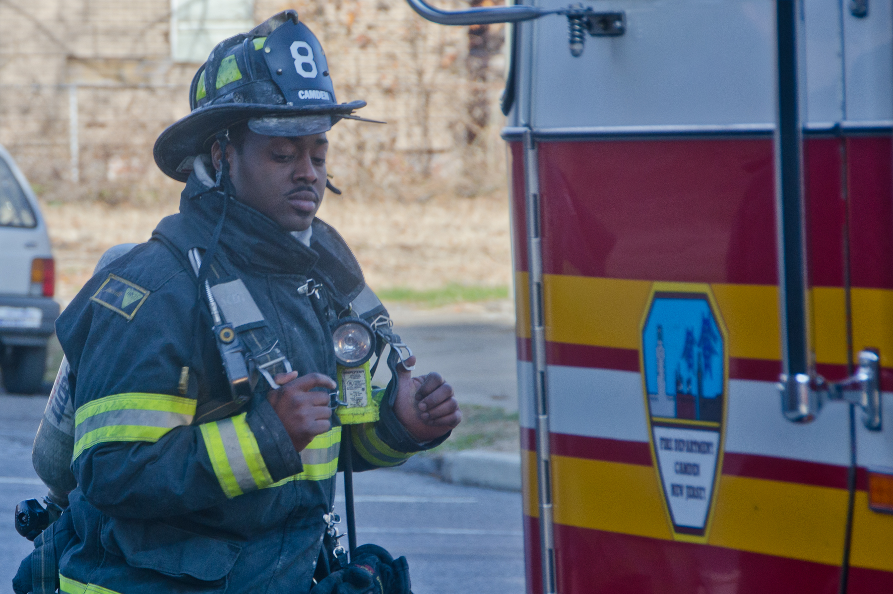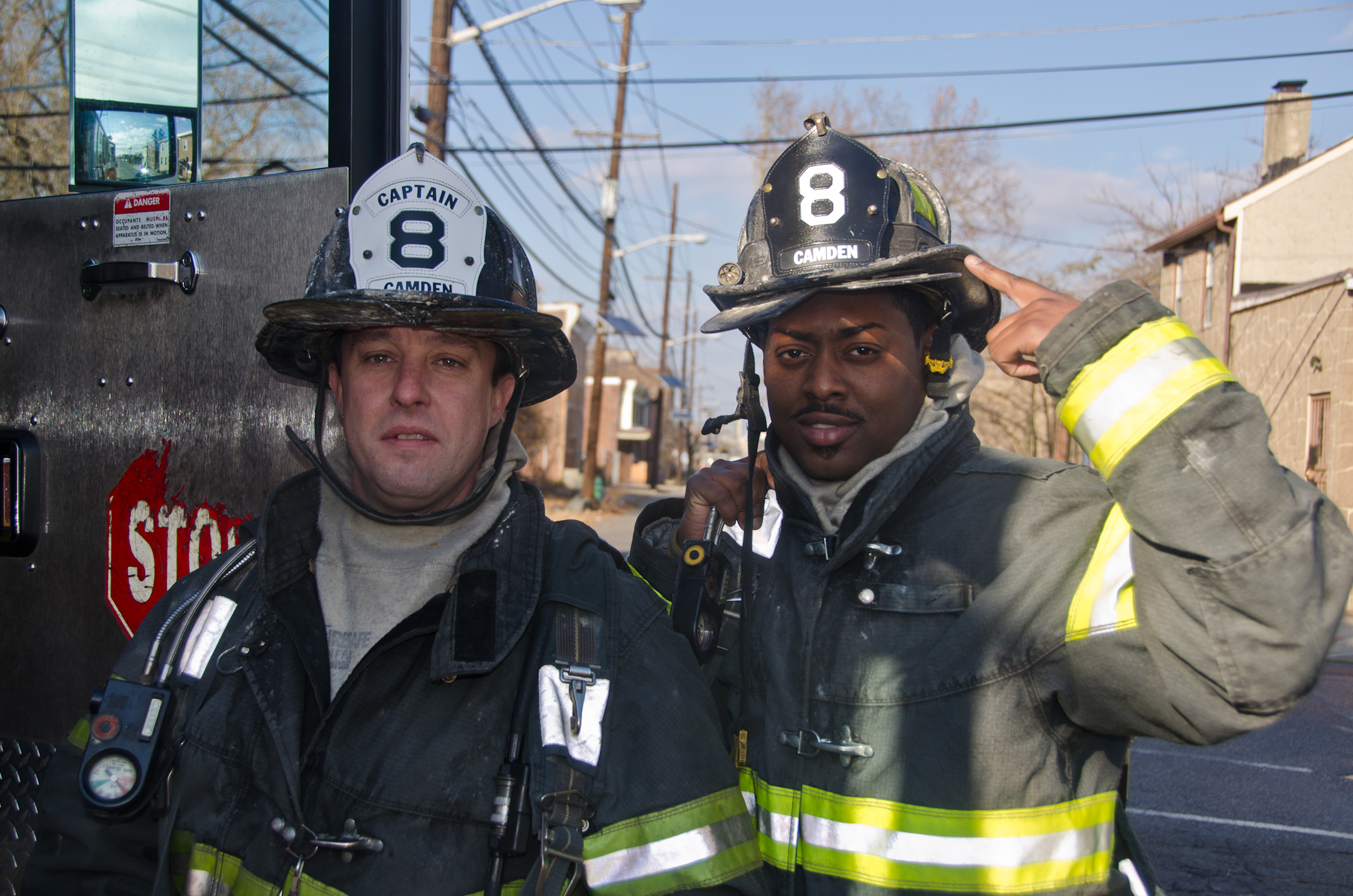 This page and the other pages in this series are the successors to the series of web-page about the Camden Fire Department that began with the page Camden Fire Department: The Fires of the Summer of 2011. On this and other pages in the series you will find pictures and information regarding different events and aspects of the fire service in Camden, New Jersey. November 28, 2012… the only flame we saw came from a hamburger on the gas grill at Liberty Station! Just before lunch Ladder 2 and Engine 8 were dispatched to the Creative Arts High School at Fillmore and Van Hook Streets (the old Mickle School Annex) for an alarm activation, before returning to quarters the companies were sent to Fairview to assist police with a forcible entry… happily enough the occupant came to the door without anything having to be done. As with the web page covering other Camden Fire Department events, if you can identify anyone that I've missed, please comment at the bottom of the page. (I'm terrible at at names and faces). January 16, 2013 |
