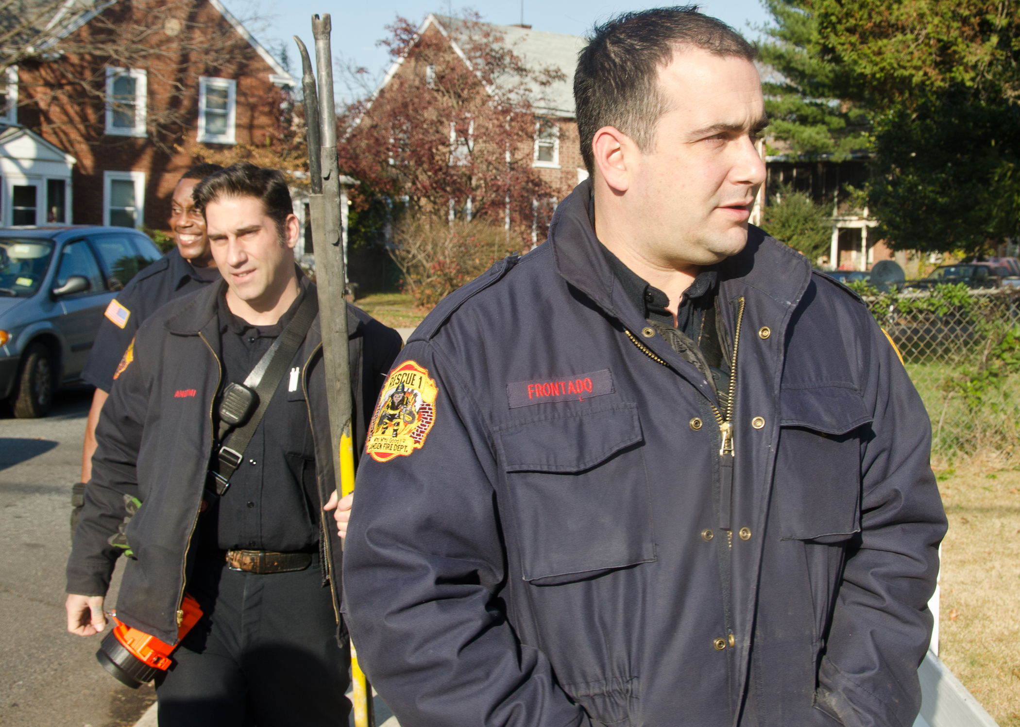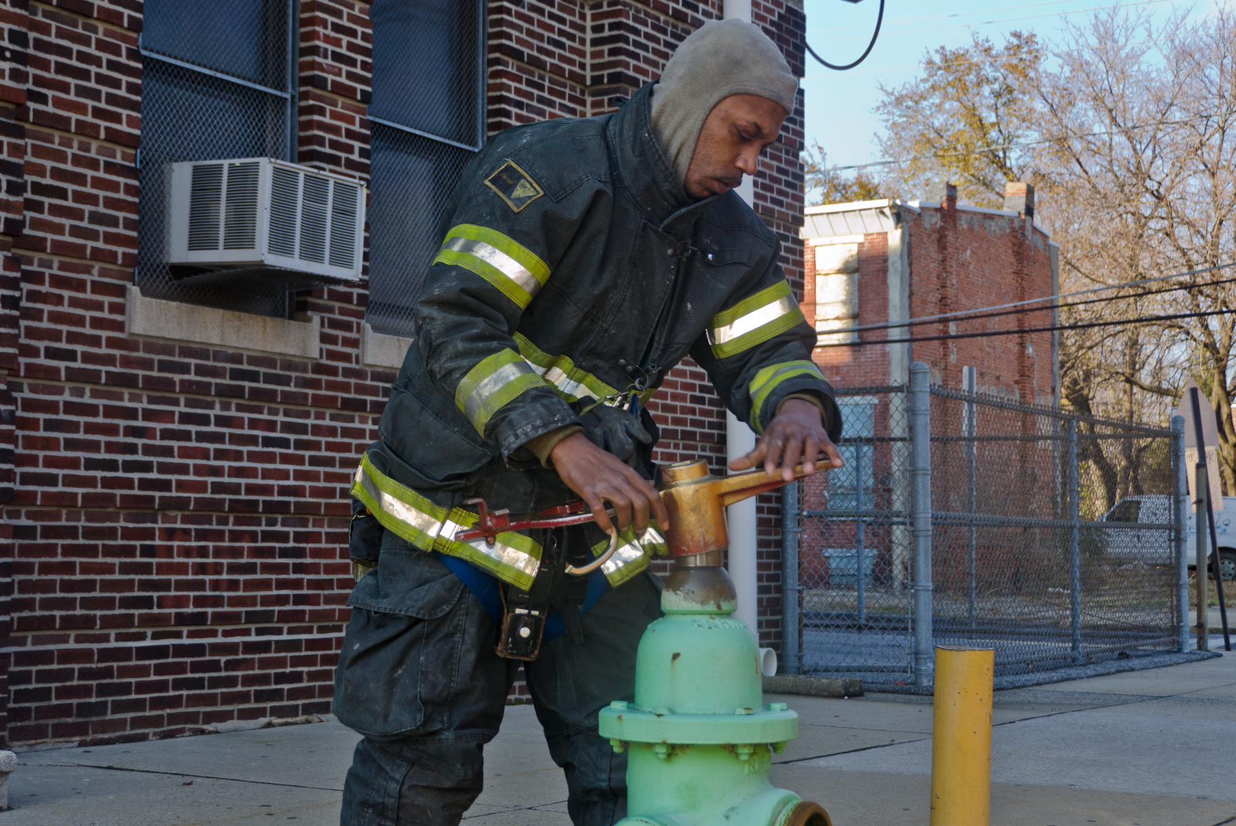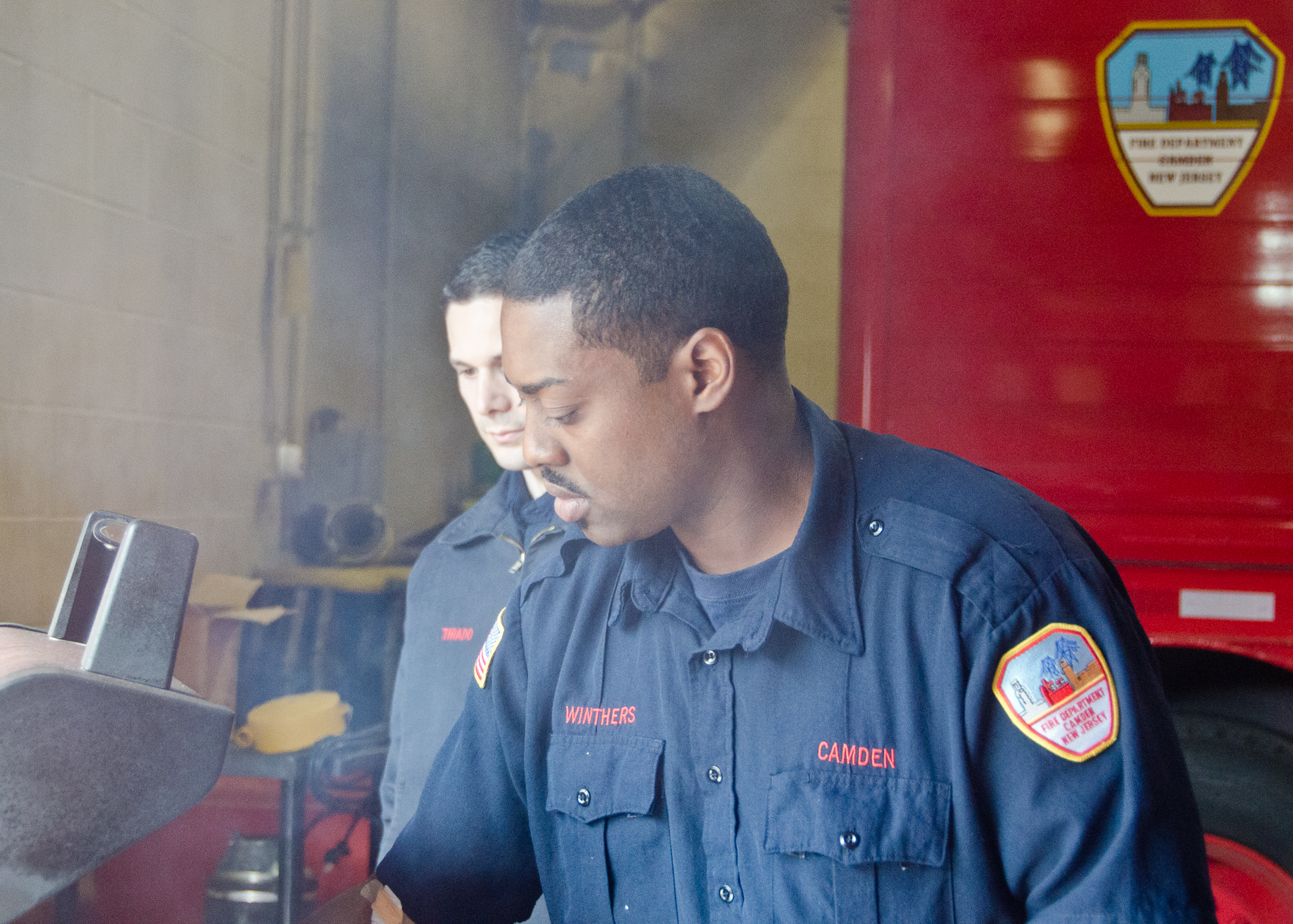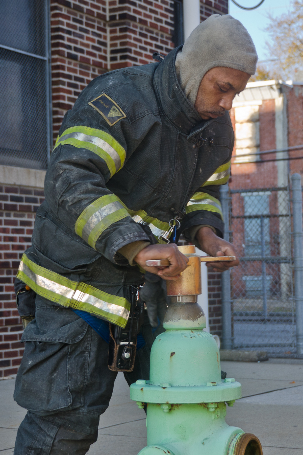 This page and the other pages in this series are the successors to the series of web-page about the Camden Fire Department that began with the page Camden Fire Department: The Fires of the Summer of 2011. On this and other pages in the series you will find pictures and information regarding different events and aspects of the fire service in Camden, New Jersey. November 28, 2012… the only flame we saw came from a hamburger on the gas grill at Liberty Station! Just before lunch Ladder 2 and Engine 8 were dispatched to the Creative Arts High School at Fillmore and Van Hook Streets (the old Mickle School Annex) for an alarm activation, before returning to quarters the companies were sent to Fairview to assist police with a forcible entry… happily enough the occupant came to the door without anything having to be done. As with the web page covering other Camden Fire Department events, if you can identify anyone that I've missed, please comment at the bottom of the page. (I'm terrible at at names and faces). January 16, 2013 |