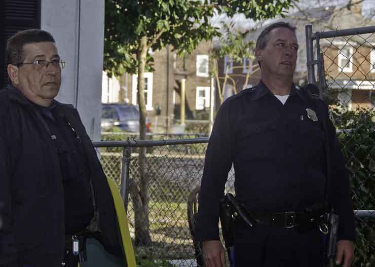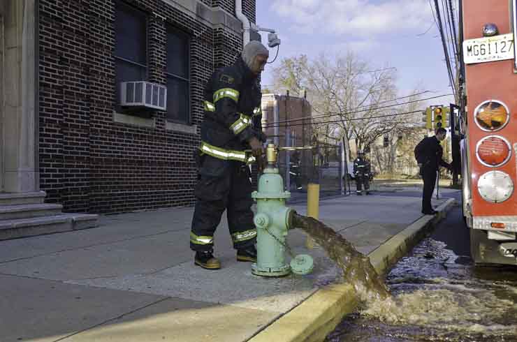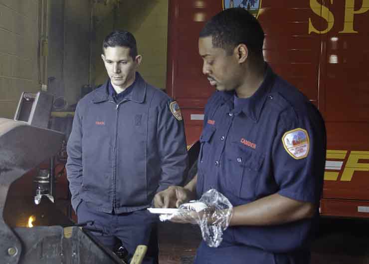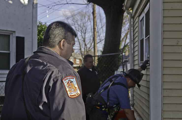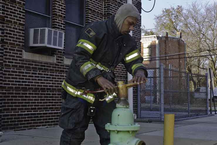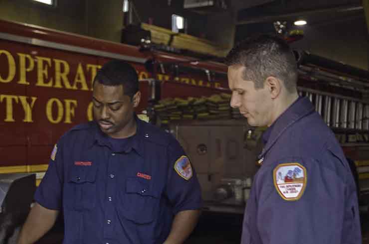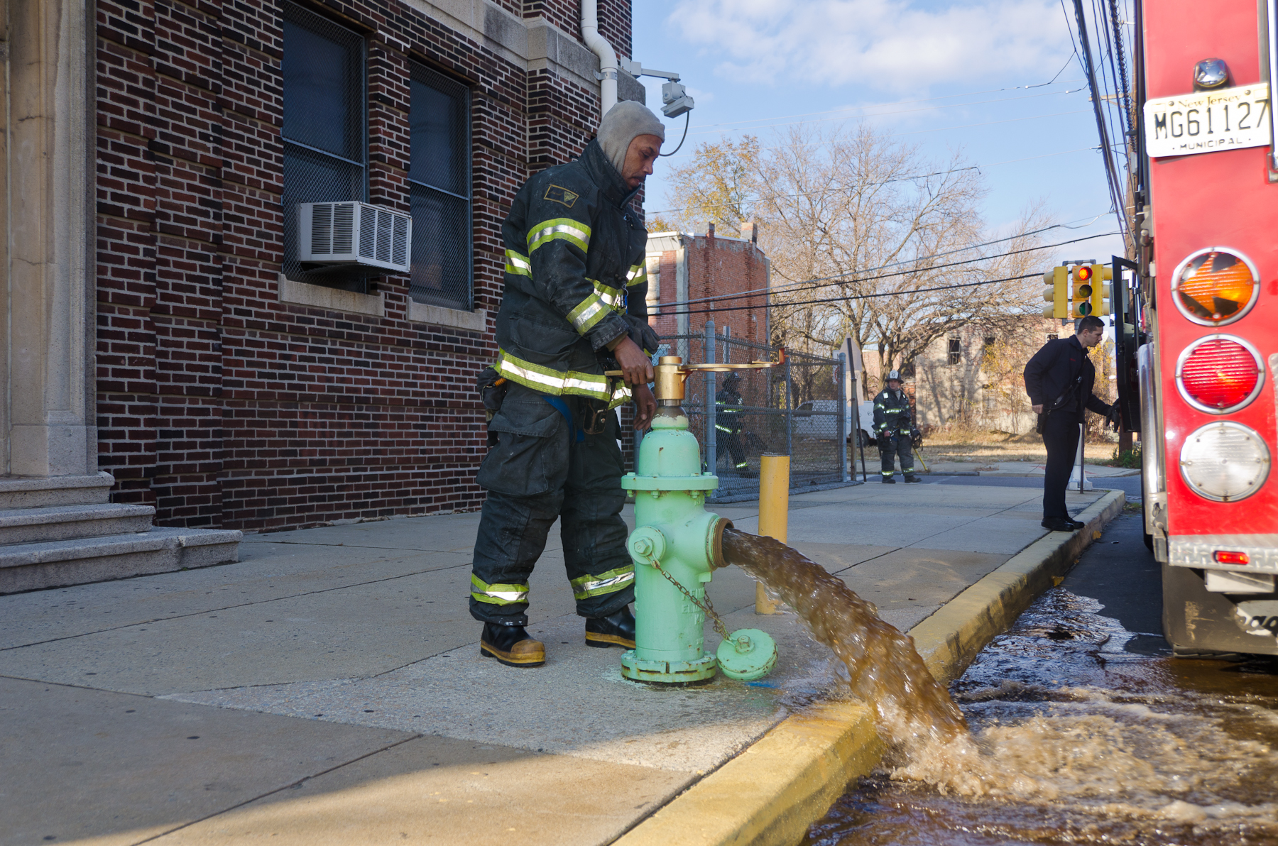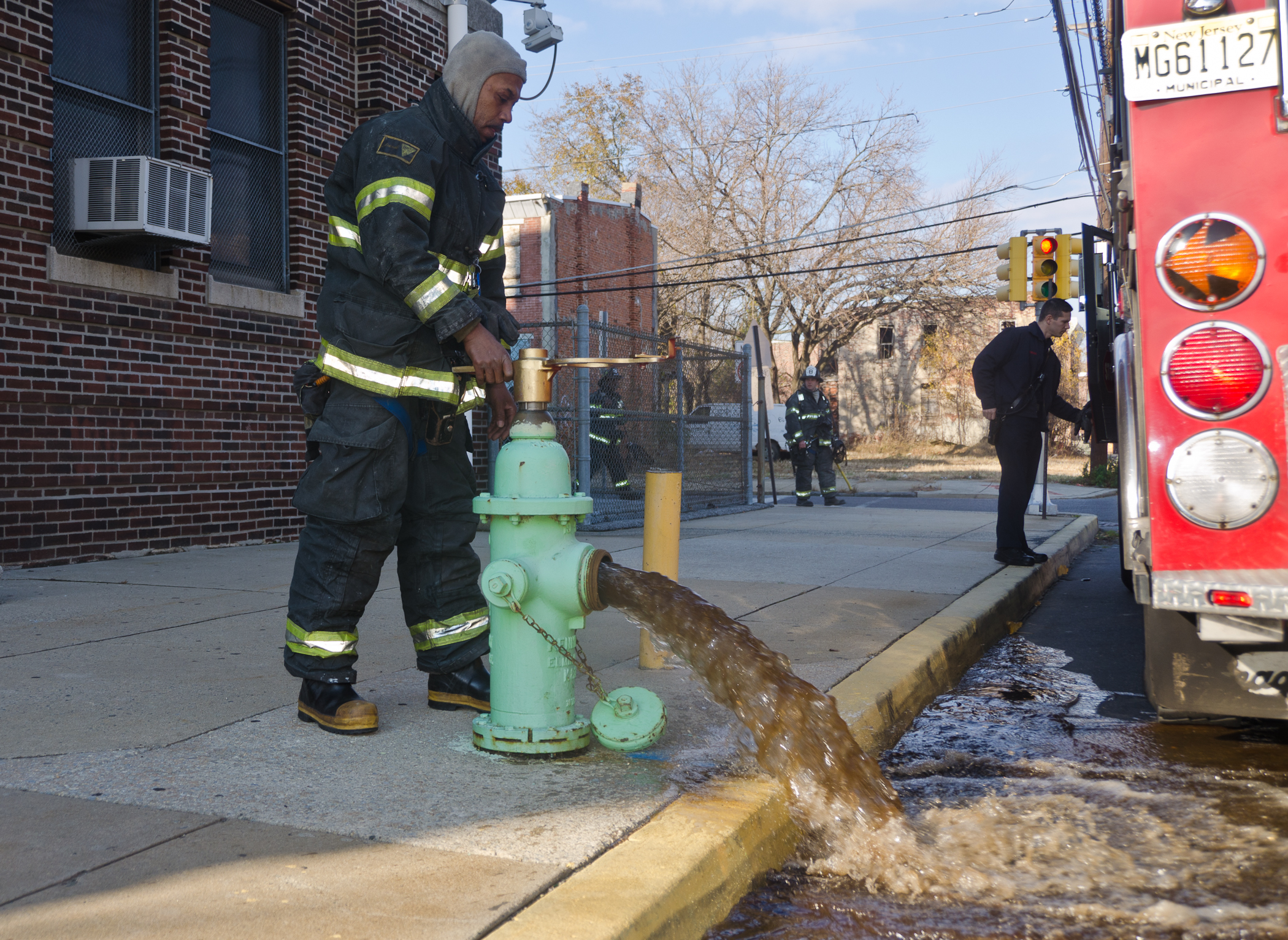This page and the other pages in this series are the successors to the series of web-page about the Camden Fire Department that began with the page Camden Fire Department: The Fires of the Summer of 2011. On this and other pages in the series you will find pictures and information regarding different events and aspects of the fire service in Camden, New Jersey. November 28, 2012… the only flame we saw came from a hamburger on the gas grill at Liberty Station! Just before lunch Ladder 2 and Engine 8 were dispatched to the Creative Arts High School at Fillmore and Van Hook Streets (the old Mickle School Annex) for an alarm activation, before returning to quarters the companies were sent to Fairview to assist police with a forcible entry… happily enough the occupant came to the door without anything having to be done. As with the web page covering other Camden Fire Department events, if you can identify anyone that I've missed, please comment at the bottom of the page. (I'm terrible at at names and faces). January 16, 2013 |