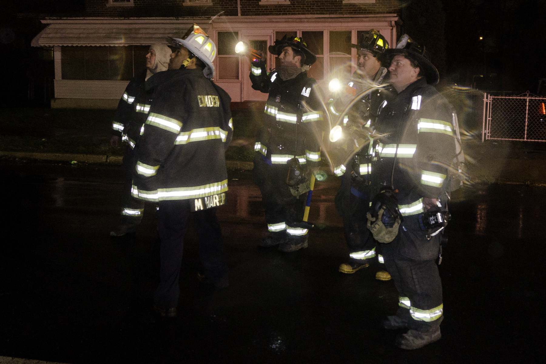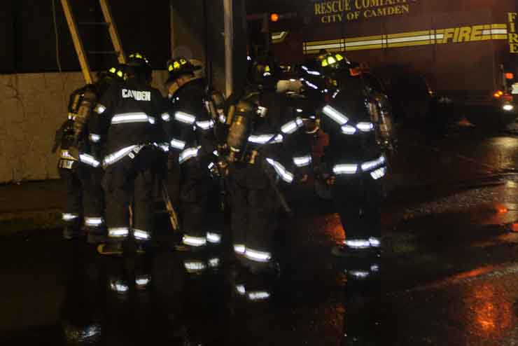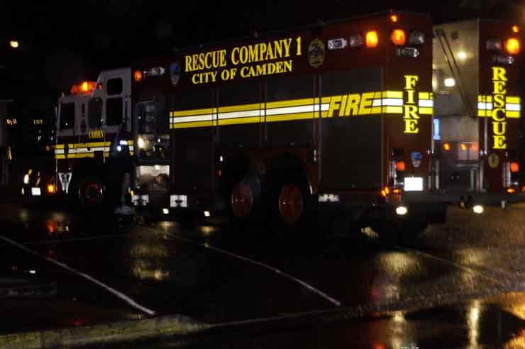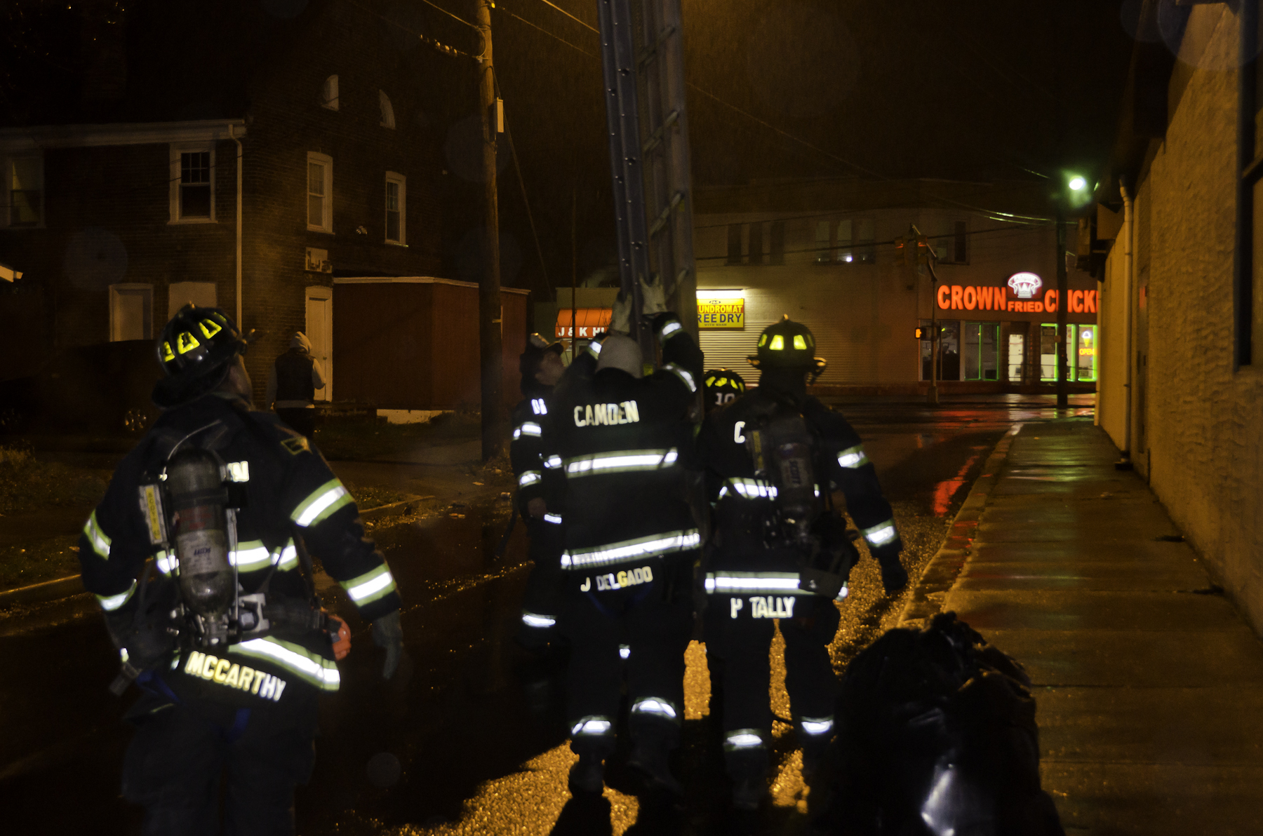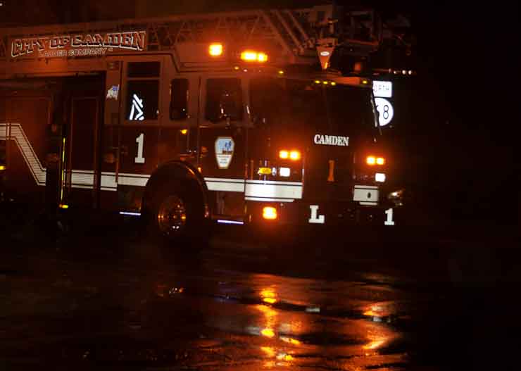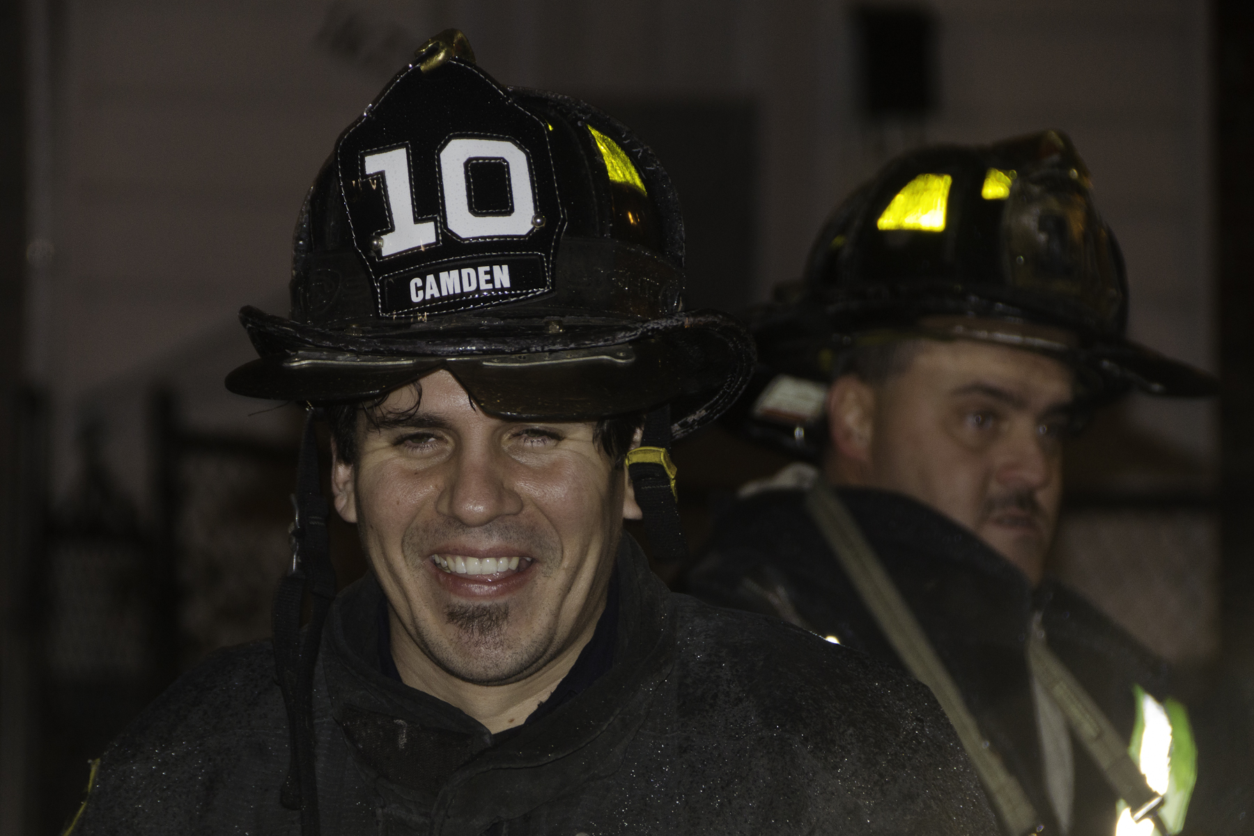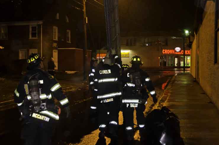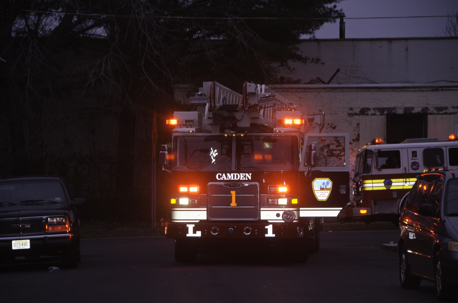 This page and the other pages in this series are the successors to the series of web-page about the Camden Fire Department that began with the page Camden Fire Department: The Fires of the Summer of 2011. On this and other pages in the series you will find pictures and information regarding different events and aspects of the fire service in Camden, New Jersey. The First Run: On Christmas Eve and Thanksgiving I make my "donut run"… drop off a dozen from Dunkin' Donuts at each of Camden's fire houses. I was at the East Camden firehouse when a call came over the radio for a gas leak at 928 Vine Street. The neighbors at 926 Vine had smelled a strong odor coming from next door, and with the resident of 928 not being at home, they called 911. The odor turned out to be fuel oil spilled in the basement of 928 Vine. After this job, I delivers some more donuts, then went home for Christmas with the in-laws, then went back out to drop donuts of at Squad 7 and at Engine 10, where I caught another run. The Second Run: Engine 10 and other units were dispatched to a house in the 1300 block of Van Hook Street, this turned out to be nothing, but before we had a chance to get moving a call came for a building fire at Lou's Pizza at Collings Road and Mt. Ephraim Avenue. This, fortunately, was not a fire, a passer-by had seen smoke coming from the roof. Fire Department investigated the perimeter of the building and went up on the roof. No evidence of fire was found. As with the web page covering other Camden Fire Department events, if you can identify anyone that I've missed, please comment at the bottom of the page. (I'm terrible at at names and faces). January 17, 2013 |