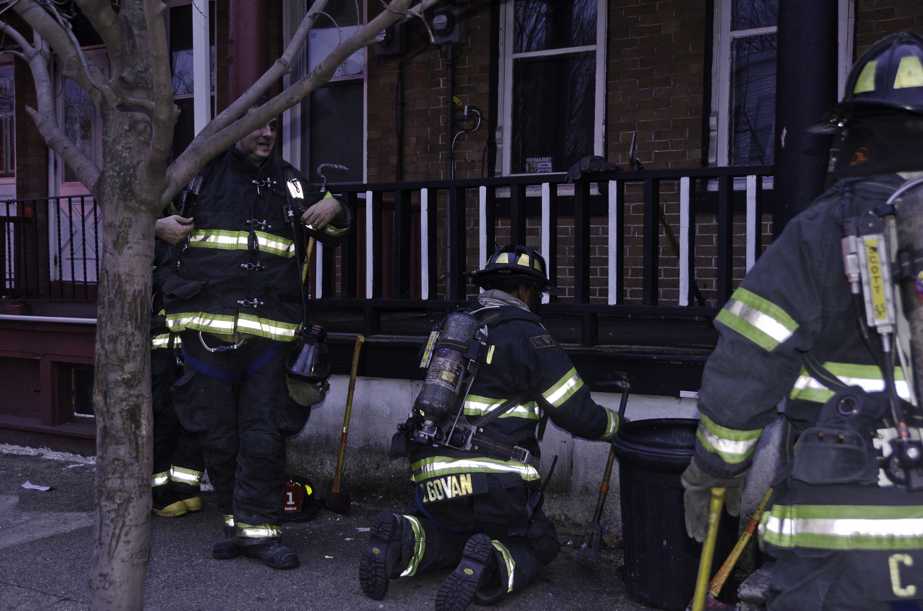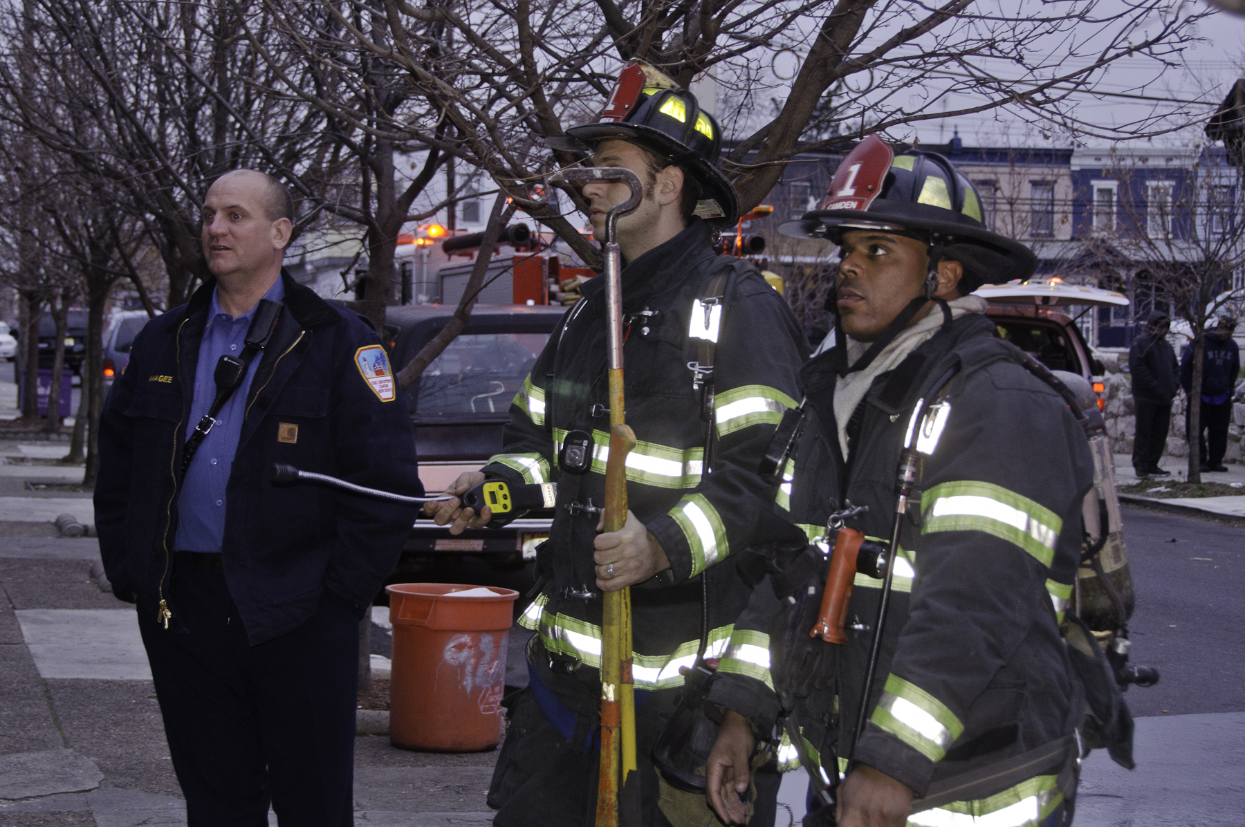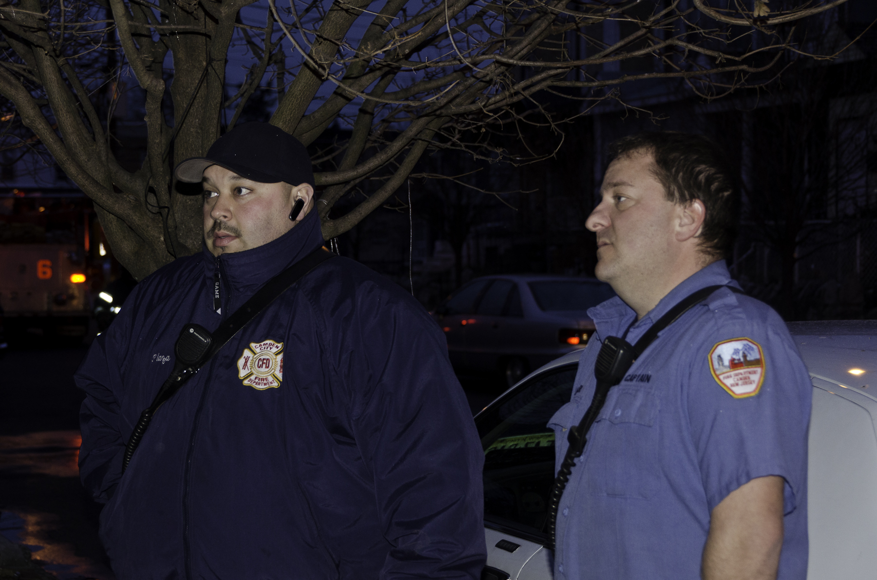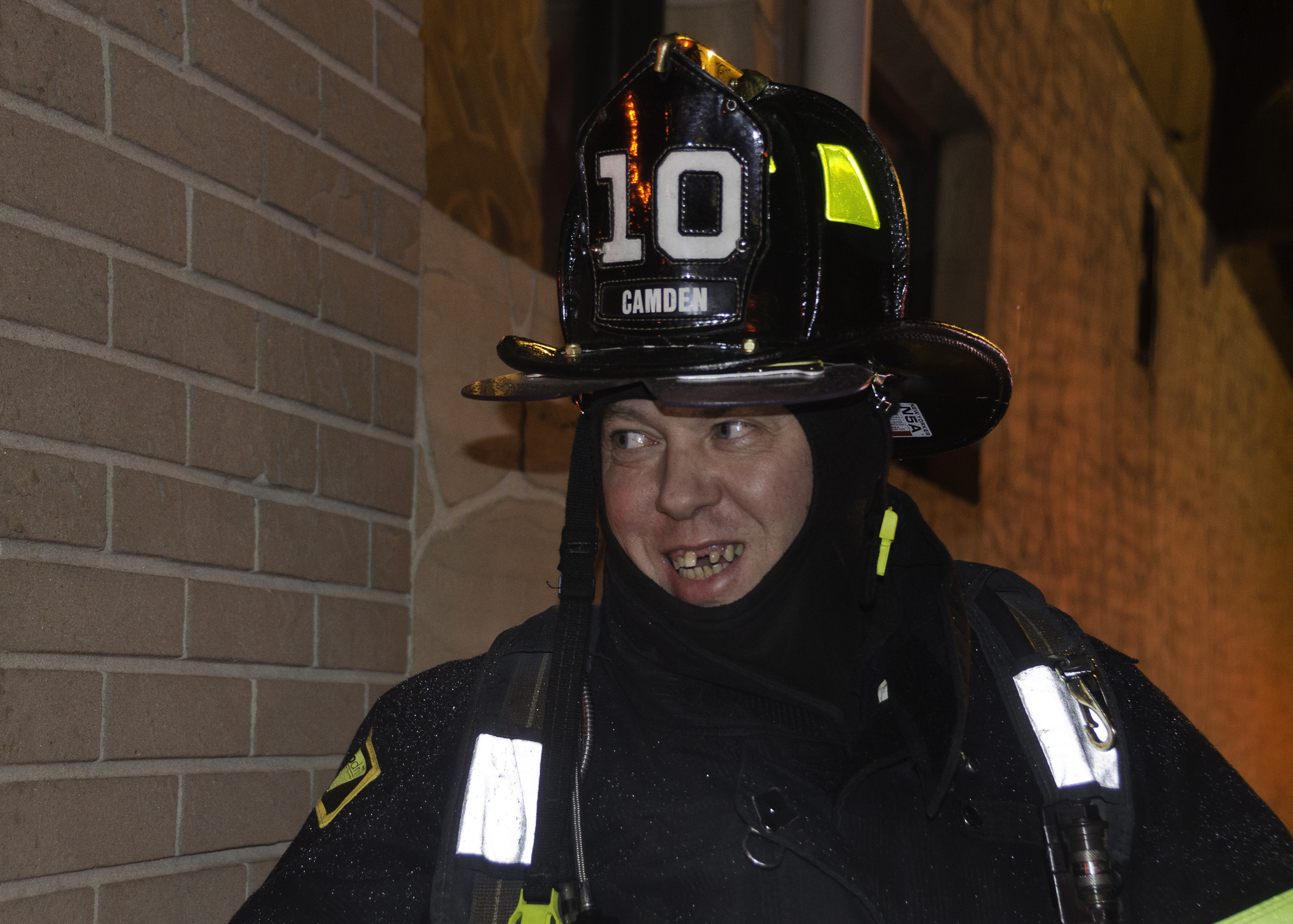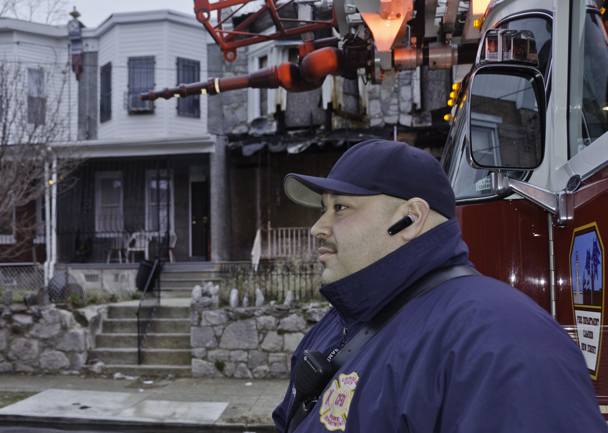 This page and the other pages in this series are the successors to the series of web-page about the Camden Fire Department that began with the page Camden Fire Department: The Fires of the Summer of 2011. On this and other pages in the series you will find pictures and information regarding different events and aspects of the fire service in Camden, New Jersey. The First Run: On Christmas Eve and Thanksgiving I make my "donut run"… drop off a dozen from Dunkin' Donuts at each of Camden's fire houses. I was at the East Camden firehouse when a call came over the radio for a gas leak at 928 Vine Street. The neighbors at 926 Vine had smelled a strong odor coming from next door, and with the resident of 928 not being at home, they called 911. The odor turned out to be fuel oil spilled in the basement of 928 Vine. After this job, I delivers some more donuts, then went home for Christmas with the in-laws, then went back out to drop donuts of at Squad 7 and at Engine 10, where I caught another run. The Second Run: Engine 10 and other units were dispatched to a house in the 1300 block of Van Hook Street, this turned out to be nothing, but before we had a chance to get moving a call came for a building fire at Lou's Pizza at Collings Road and Mt. Ephraim Avenue. This, fortunately, was not a fire, a passer-by had seen smoke coming from the roof. Fire Department investigated the perimeter of the building and went up on the roof. No evidence of fire was found. As with the web page covering other Camden Fire Department events, if you can identify anyone that I've missed, please comment at the bottom of the page. (I'm terrible at at names and faces). January 17, 2013 |