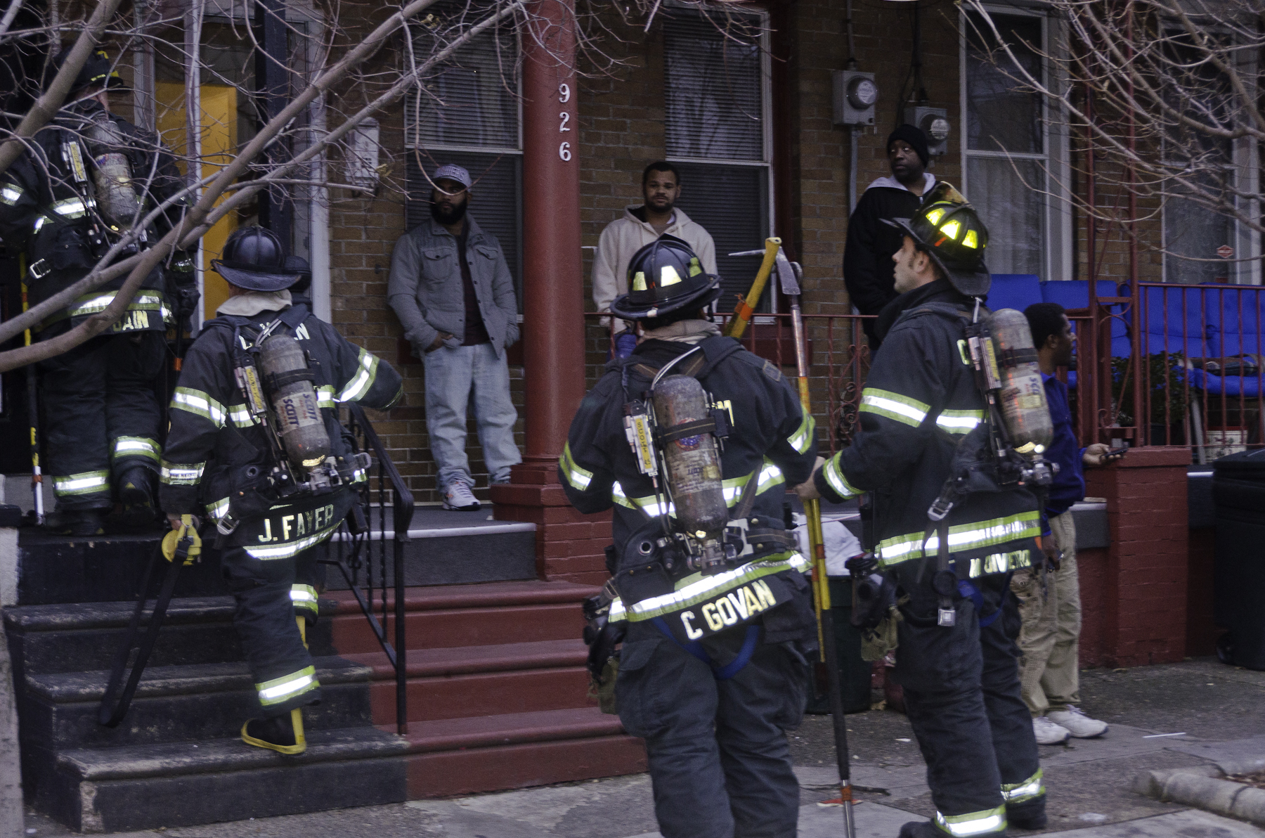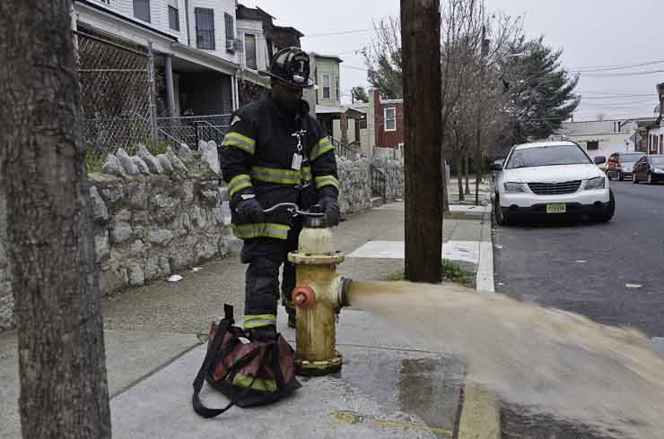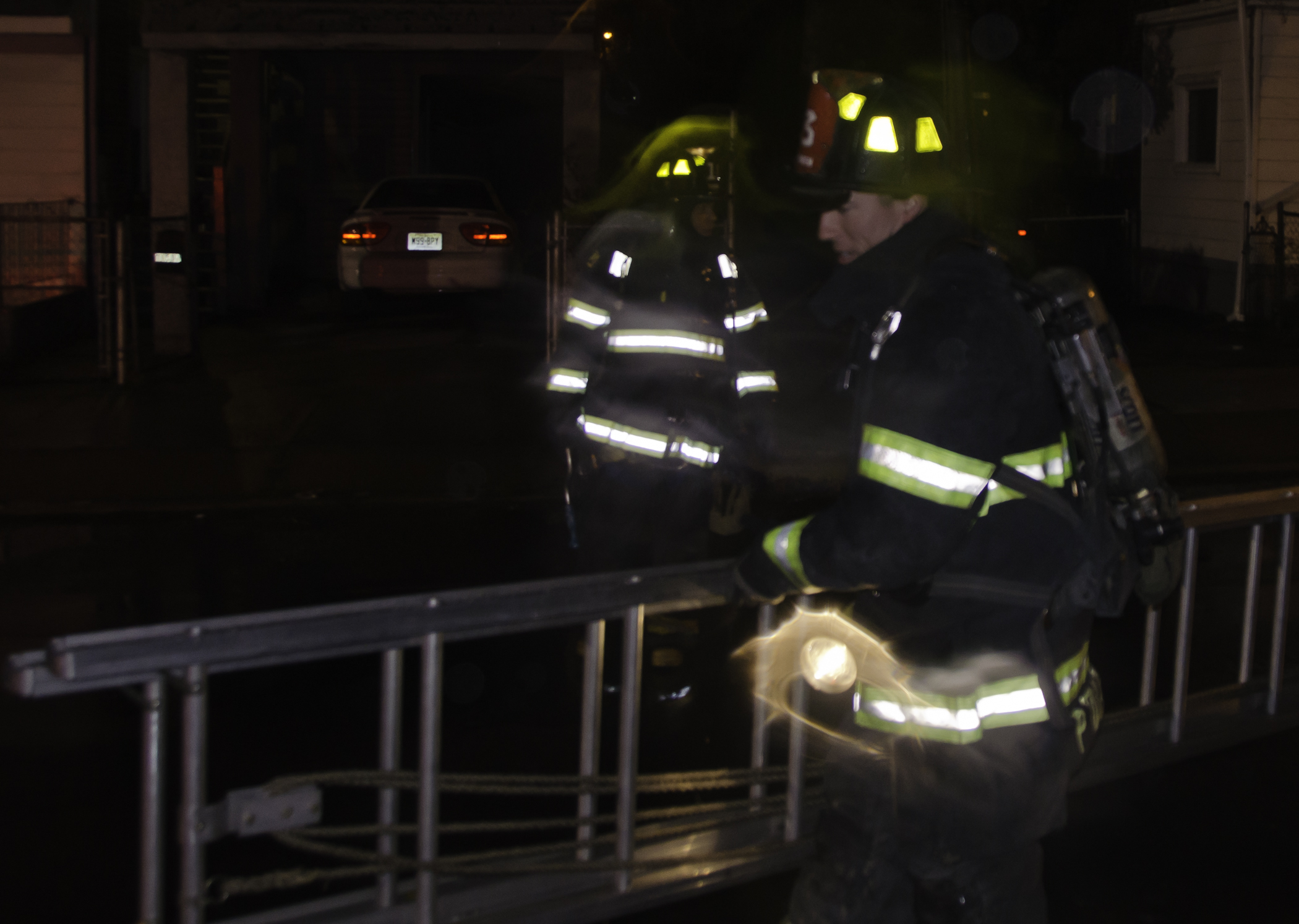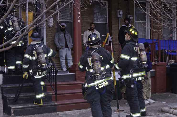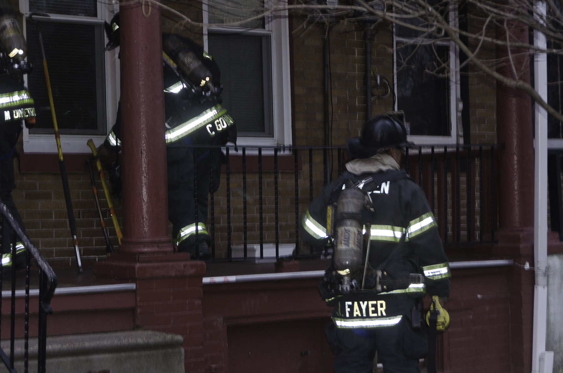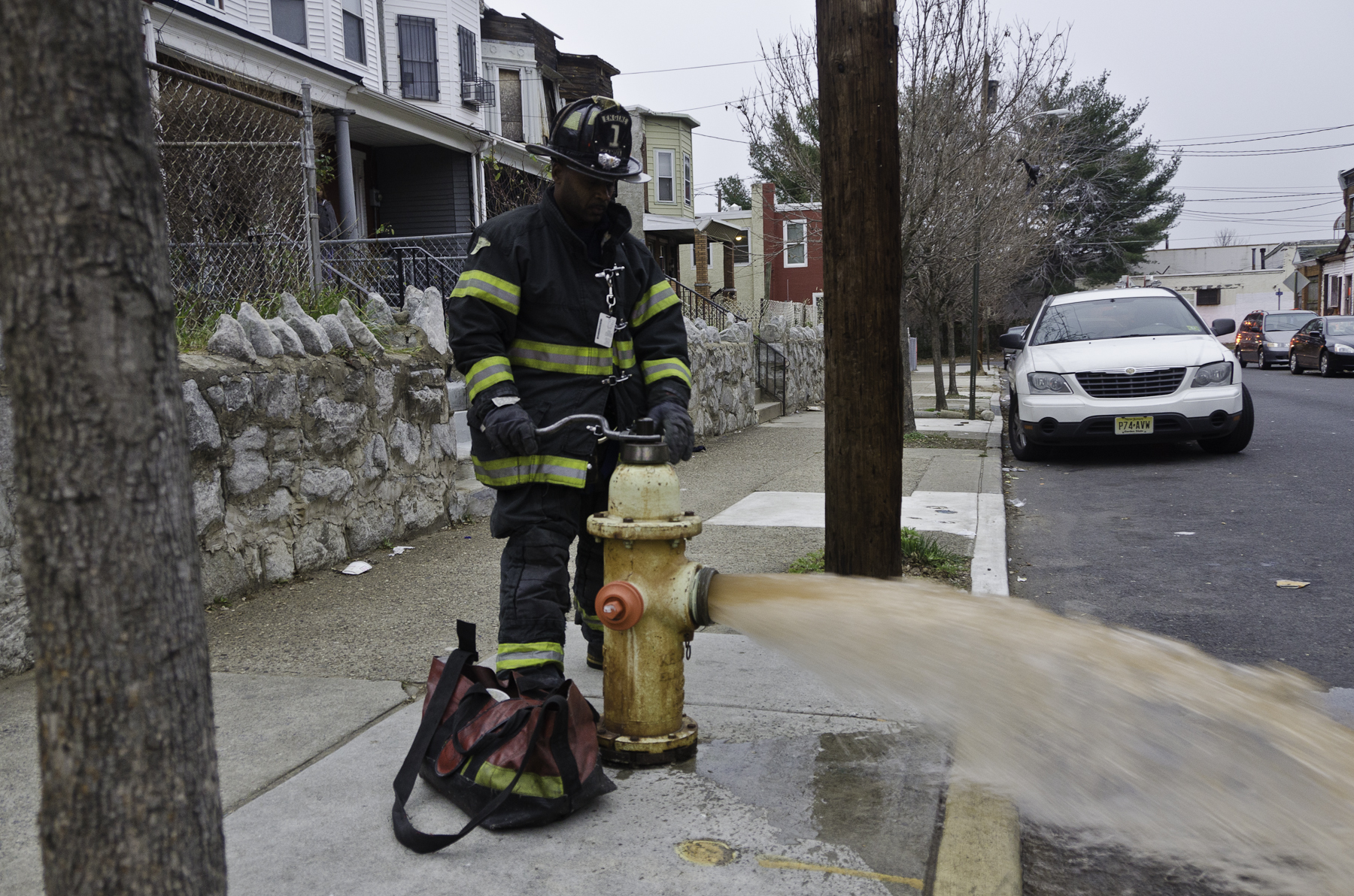 This page and the other pages in this series are the successors to the series of web-page about the Camden Fire Department that began with the page Camden Fire Department: The Fires of the Summer of 2011. On this and other pages in the series you will find pictures and information regarding different events and aspects of the fire service in Camden, New Jersey. The First Run: On Christmas Eve and Thanksgiving I make my "donut run"… drop off a dozen from Dunkin' Donuts at each of Camden's fire houses. I was at the East Camden firehouse when a call came over the radio for a gas leak at 928 Vine Street. The neighbors at 926 Vine had smelled a strong odor coming from next door, and with the resident of 928 not being at home, they called 911. The odor turned out to be fuel oil spilled in the basement of 928 Vine. After this job, I delivers some more donuts, then went home for Christmas with the in-laws, then went back out to drop donuts of at Squad 7 and at Engine 10, where I caught another run. The Second Run: Engine 10 and other units were dispatched to a house in the 1300 block of Van Hook Street, this turned out to be nothing, but before we had a chance to get moving a call came for a building fire at Lou's Pizza at Collings Road and Mt. Ephraim Avenue. This, fortunately, was not a fire, a passer-by had seen smoke coming from the roof. Fire Department investigated the perimeter of the building and went up on the roof. No evidence of fire was found. As with the web page covering other Camden Fire Department events, if you can identify anyone that I've missed, please comment at the bottom of the page. (I'm terrible at at names and faces). January 17, 2013 |