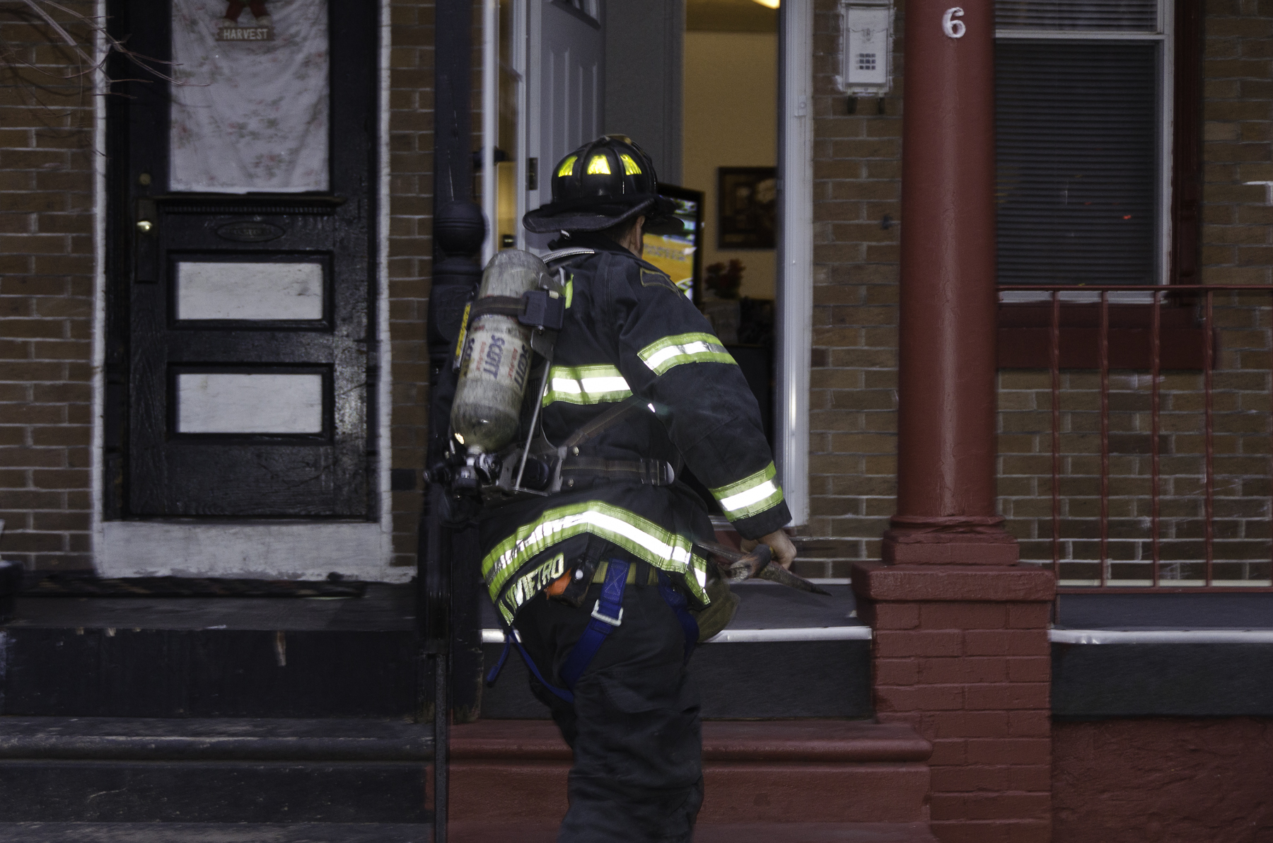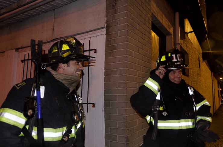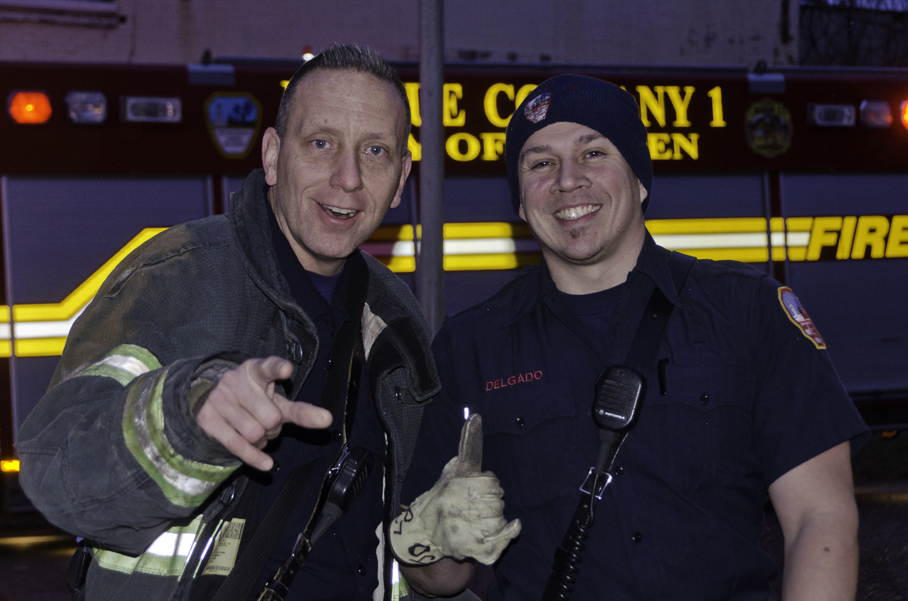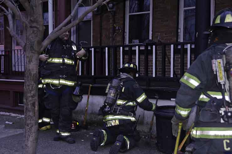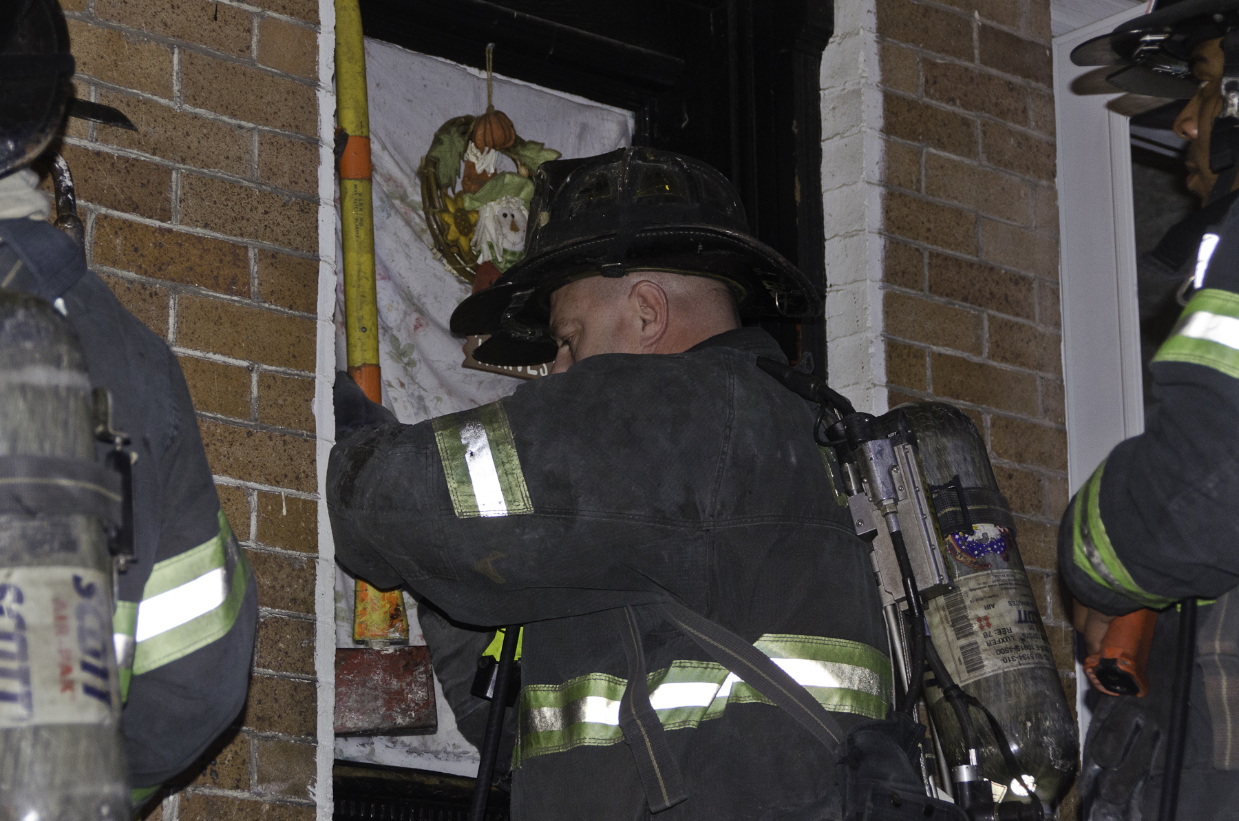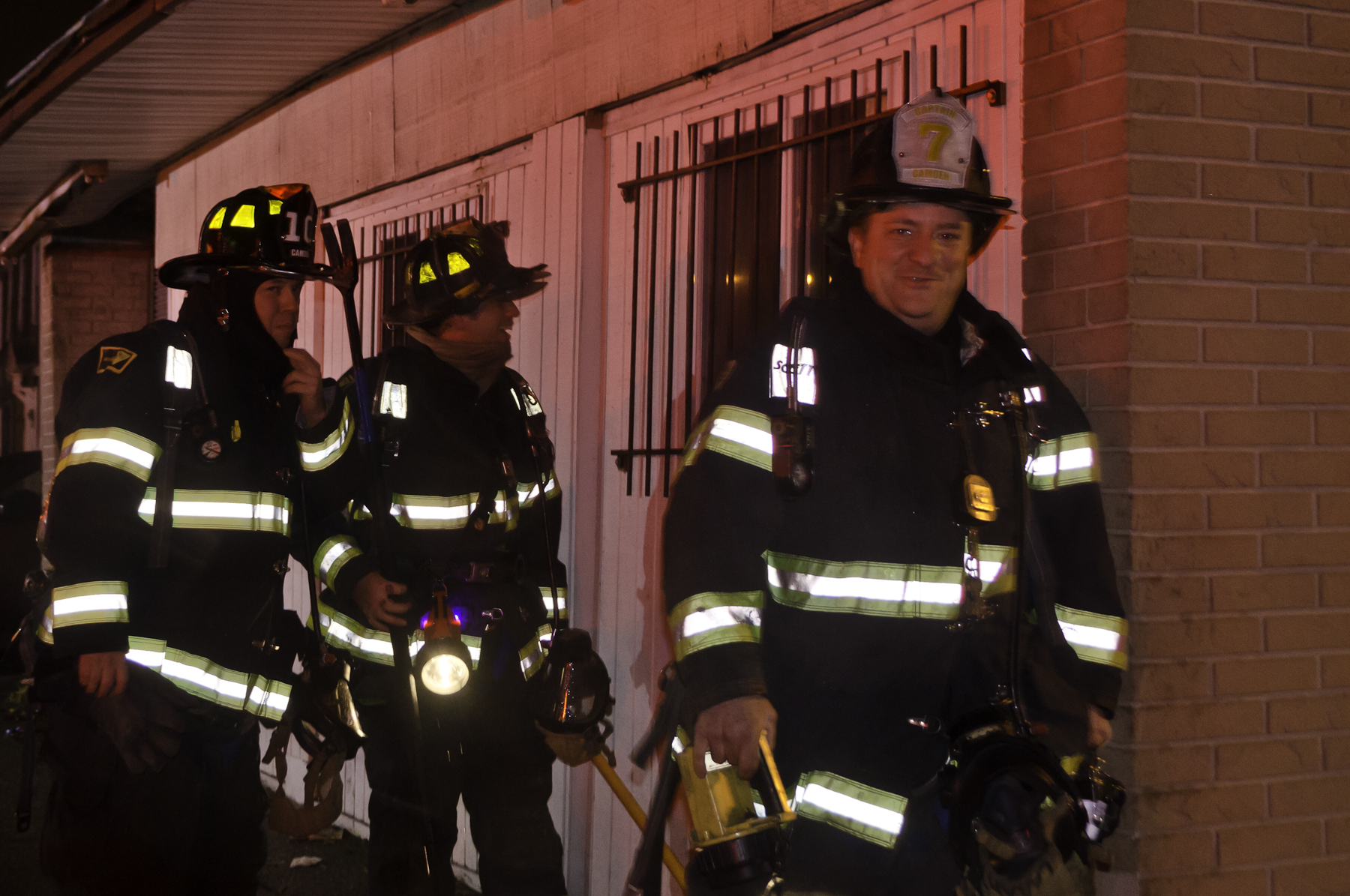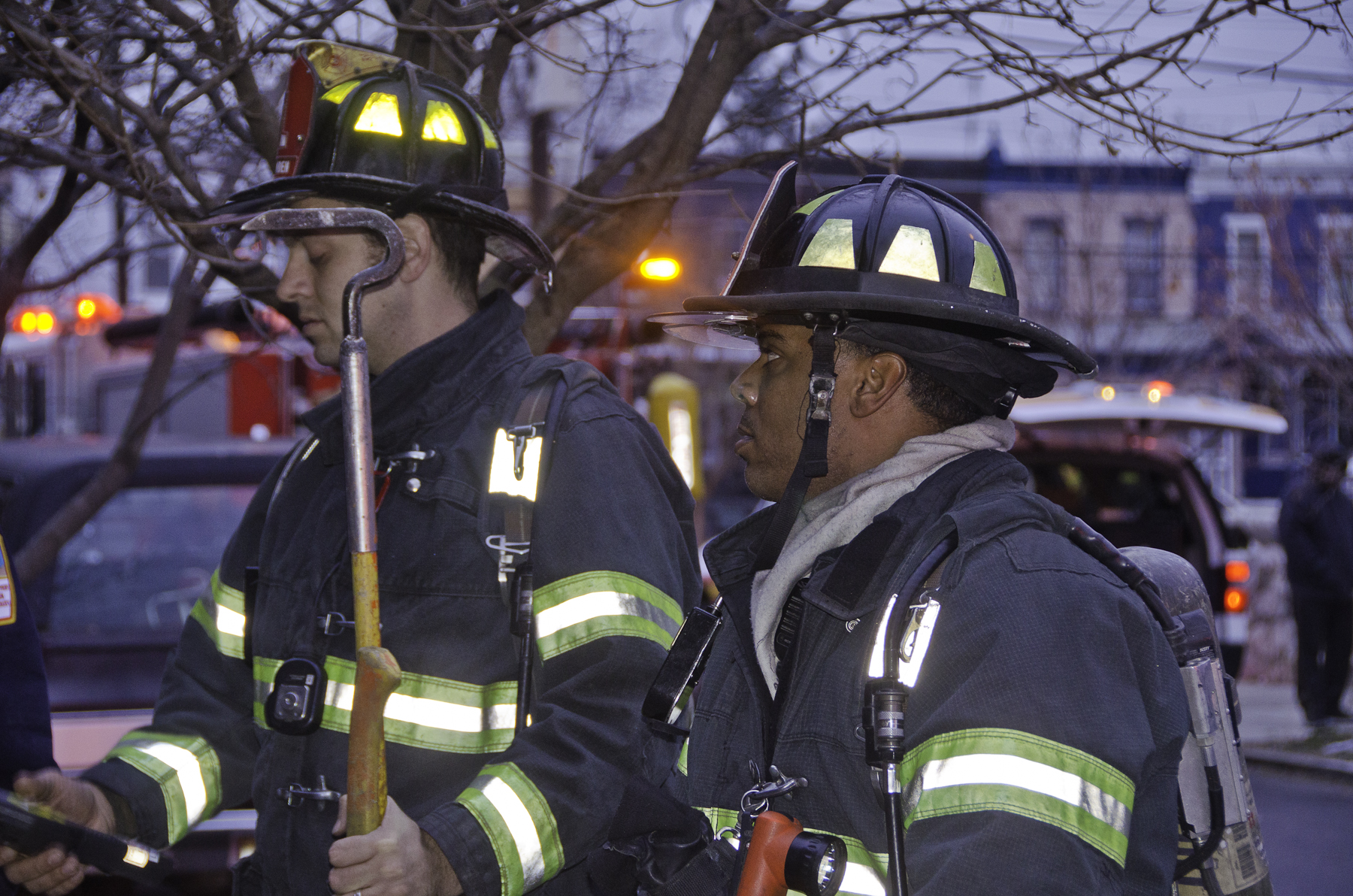 This page and the other pages in this series are the successors to the series of web-page about the Camden Fire Department that began with the page Camden Fire Department: The Fires of the Summer of 2011. On this and other pages in the series you will find pictures and information regarding different events and aspects of the fire service in Camden, New Jersey. The First Run: On Christmas Eve and Thanksgiving I make my "donut run"… drop off a dozen from Dunkin' Donuts at each of Camden's fire houses. I was at the East Camden firehouse when a call came over the radio for a gas leak at 928 Vine Street. The neighbors at 926 Vine had smelled a strong odor coming from next door, and with the resident of 928 not being at home, they called 911. The odor turned out to be fuel oil spilled in the basement of 928 Vine. After this job, I delivers some more donuts, then went home for Christmas with the in-laws, then went back out to drop donuts of at Squad 7 and at Engine 10, where I caught another run. The Second Run: Engine 10 and other units were dispatched to a house in the 1300 block of Van Hook Street, this turned out to be nothing, but before we had a chance to get moving a call came for a building fire at Lou's Pizza at Collings Road and Mt. Ephraim Avenue. This, fortunately, was not a fire, a passer-by had seen smoke coming from the roof. Fire Department investigated the perimeter of the building and went up on the roof. No evidence of fire was found. As with the web page covering other Camden Fire Department events, if you can identify anyone that I've missed, please comment at the bottom of the page. (I'm terrible at at names and faces). January 17, 2013 |
