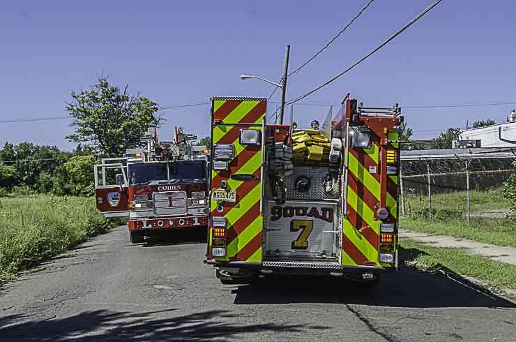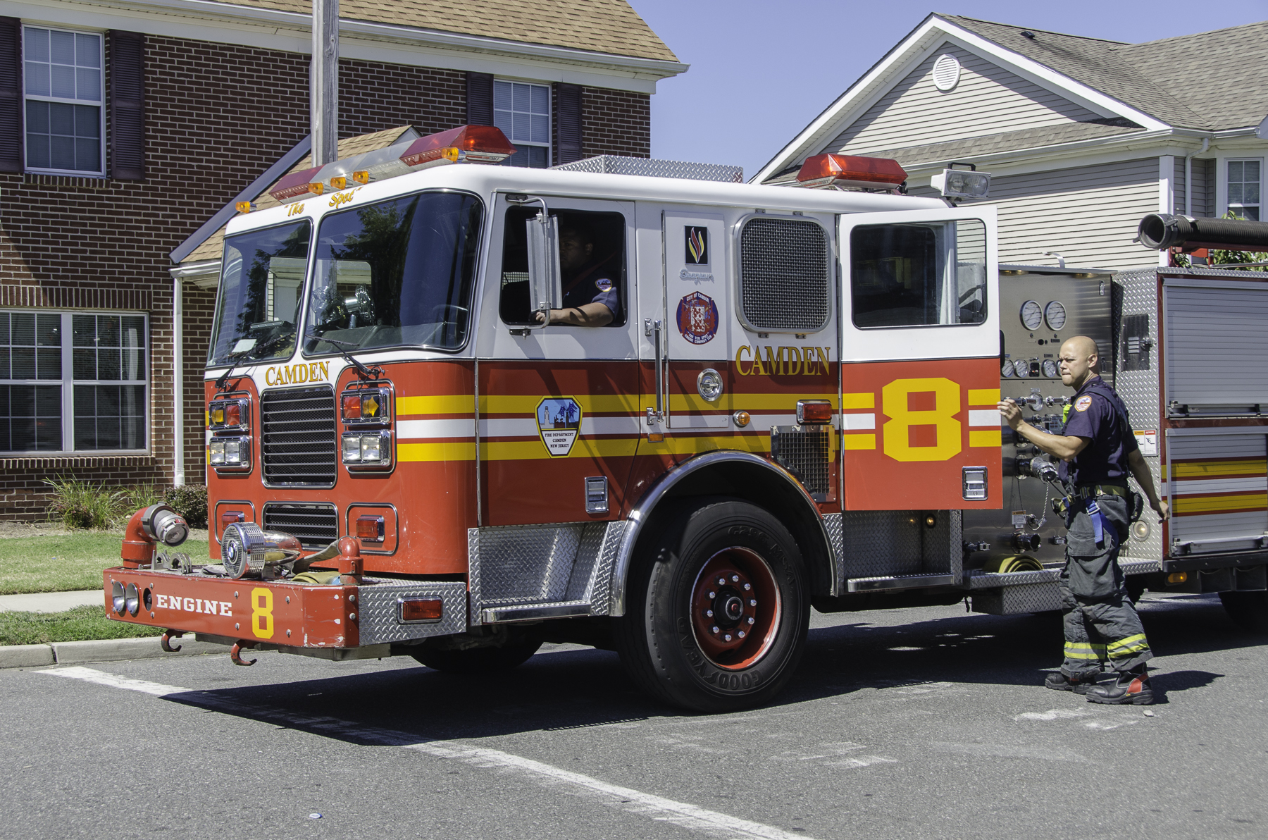 This page and the other pages in this series are the successors to the series of web-page about the Camden Fire Department that began with the page Camden Fire Department: The Fires of the Summer of 2011. On this and other pages in the series you will find pictures and information regarding different events and aspects of the fire service in Camden, New Jersey. There was a time when it was not uncommon for the Camden Fire Department to go from one fire to the next… the most famous example, of course, being Mischief Night in 1991 when companies from Camden and elsewhere were operating all night long. The first box was at 735 Sylvan Street in the Morgan Village section of Camden. This was a quick knockdown. I was at Grove Street and Route 70 when this came over the scanner, so once again, I got there late… but late is better than not at all. Moments after the last company had pulled away, the second box came for 713 Ware Street, only a few blocks away in the Chelton Terrace public housing project. On the way back to Pennsauken, I caught up with Engine 9, investigating a report of a child hit by a car in the 3400 block of Cramer Street. This apparently was a false alarm. As with the web page covering other Camden Fire Department events, if you can identify anyone that I've missed, please comment at the bottom of the page. (I'm terrible at at names and faces). February 7, 2014 |