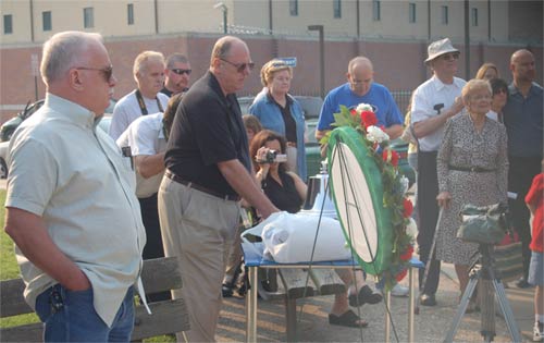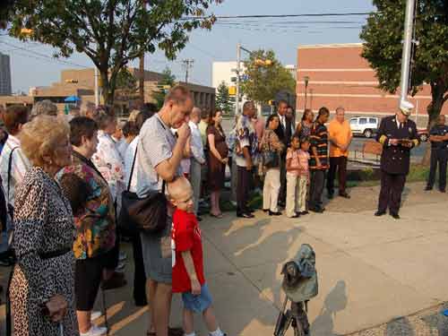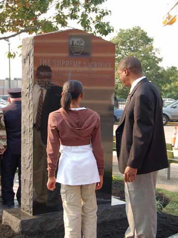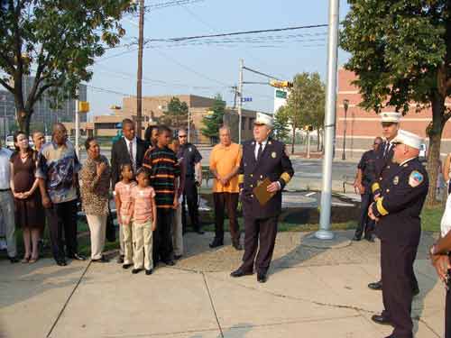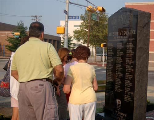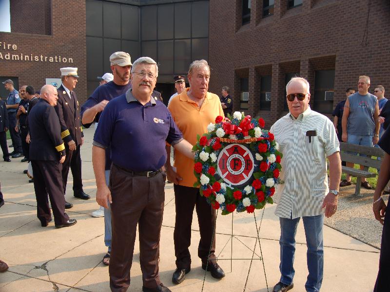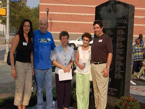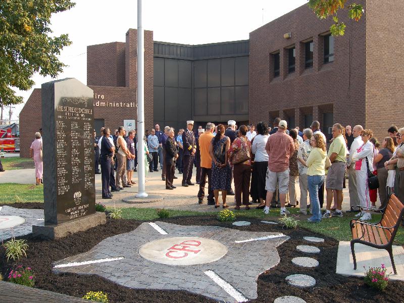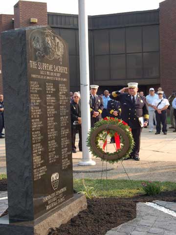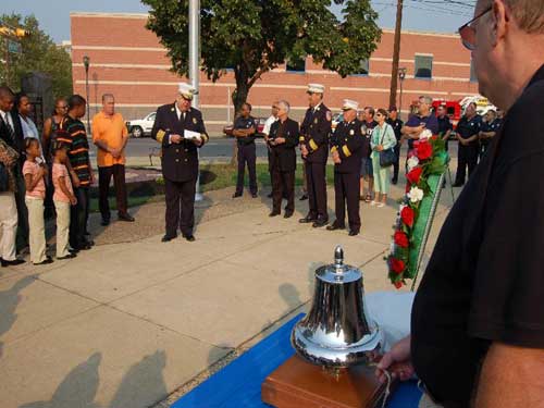 Ceremony - September 9, 2006 Photographs by Bob Bartosz On September 9, 2006 the Camden NJ Fire Department celebrated their 137th Anniversary along with this they paid Tribute to twenty-four (24) Members who paid The Supreme Sacrifice. The first member who Died In The Line Of Duty on November 1, 1892 and the last member who Died In The Line Of Duty on March 7, 2006. After many months of work over sixty ( 60 ) Relatives and Family Members of fifteen ( 15 ) of the twenty-four ( 24 ) Fallen Fighters were found and invited to the Dedication and Ceremony of the Monument. It was placed in front of Fire Headquarters at 3rd and Federal Streets. Monsignor Michael Mannion gave the Invocation and blessing of the monument. As a piper from the Camden Emerald Society played Amazing Grace, Camden's Chief of the Department Joseph Marini read out the name and date of each of the Fallen twenty-four ( 24 ) Fire Fighters with the strike of a fire bell. Wreaths and flowers were placed by family members and Locals IAFF 788 and 2578 also by members of the Anniversary Committee. Many of the family members were very grateful for this event and praised the Camden Fire Department for paying Tribute to their deceased Love Ones. |
