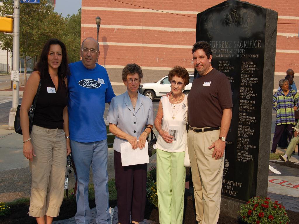 On September 9, 2006 the Camden Firemen's Memorial was formally dedicated. Relatives of all but 9 of the fallen were located prior to the ceremony. Photographs of the event taken by Bob Bartosz and Phil Cohen will be posted shortly. September 9, 2006 |