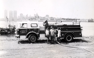 1986 Hahn Pumper Same Engine as above, Mickle and Riverview Towers apartment buildings in the background. |