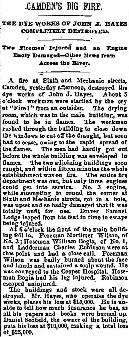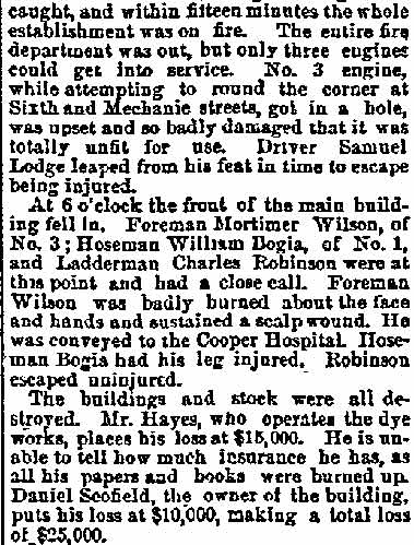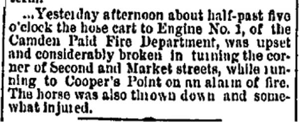 - Engine Company 1 - Samuel Lodge - mortimer wilson - William Bogia Charles Robinson - Ladder Company 1 - Cooper Hospital - Daniel Scofield |