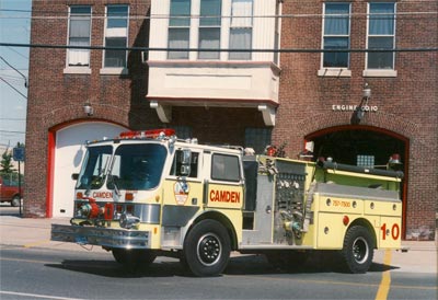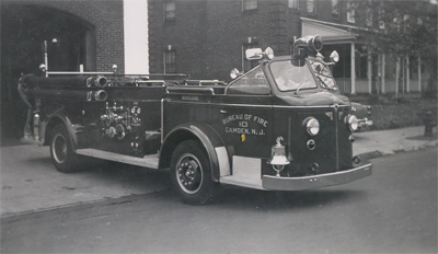 Engine Company 10 was organized September 16, 1920 at the then-new firehouse at 2500 Morgan Boulevard, in the Fairview section of Camden. The unit shared quarters with Ladder Company 4, which was organized on the same date. Ladder Company 4 was disbanded due to fiscal considerations in 1936. This firehouse was the first in Camden to be built after the department became motorized, and Engine 10 and Ladder 4 were the first two units to enter service after horse-drawn apparatus was withdrawn from use in Camden. Engine Company 10 briefly shared its quarters from 1986 to 1993 with Ladder Company 2, prior to that unit being relocated to the new Liberty Station at 1301 Broadway. Engine Company continues to protect Camden from its original location on Morgan Boulevard. |