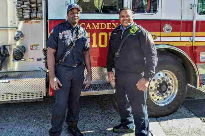 Many of the photographs on this website are from the limited edition book "Fire Department Camden NJ 125 Anniversary 1869-1994" and were taken by Department Photographer Bob Bartosz. Others are courtesy of Joel Bain of the Camden Fire Department. Thanks to Captain Michael McCarthy of the CFD for identifying the personnel in the 1994 photo. |