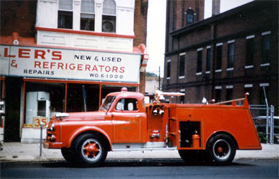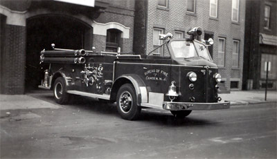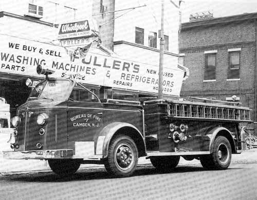 1910 American LaFrance combination hose and chemical wagon, rebuilt by The Commercial Truck Company of America. This business was founded around 1907 in Philadelphia PA. It commonly was referred to as The Commercial Truck Company and advertised itself as such. The company principally built battery powered electric vehicles. The company introduced a gasoline-electric hybrid tractor in 1915. The company built buses and commercial trucks with capacities ranging from a quarter ton to five tons. Most larger models had four-wheel-drive with an electric motor mounted on each wheel. These usually were General Electric motors. About thirty pieces of fire apparatus were built on Commercial Truck Company chassis. Camden had 11. Philadelphia also operated at least three. |
