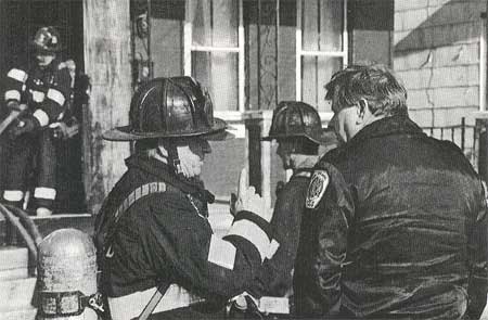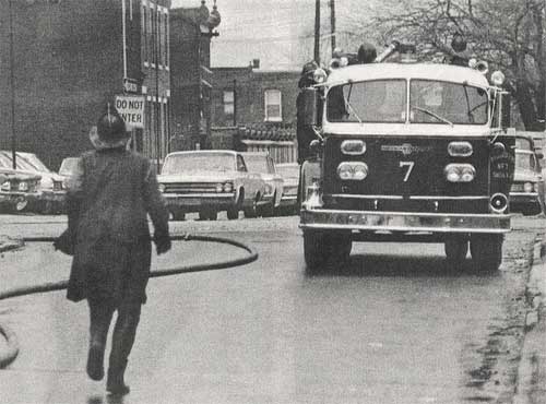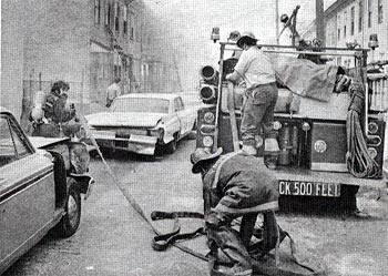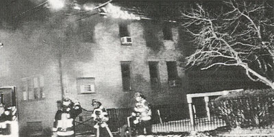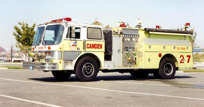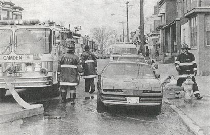 At 7:43 p.m. Engine Company 6 was dispatched for a trash fire in the 500 block of Washington Street. As Engine Company 6 was approaching they were confronted with heavy fire coming from a three story vacant at 574 Washington Street. The box was filled out bringing additional Engine Companies 3 and 10, Ladder Company 1 , Squad Company 2 (manpower) and Battalion Chief 1 . The fire had now spread to an adjoining three story vacant. Battalion Chief Robert Basile had requested a special call for a Tower Ladder with all of Camden's Tower Ladders being tied up at other working fires. Fire Radio dispatched Station 11-4 from Pennsauken Fire Department for their Tower Ladder. The blaze has now heavily involved the two buildings with heavy fire coming out all of the windows and through the roof. Camden's Ladder Company 1 was now using its Ladder Pipe, Ground Companies were using heavy Master Streams and hand lines as Pennsauken's Tower ladder was now being put to work in the front of the building. It would take fire-fighters almost an hour to bring this blaze under control. Meanwhile, various trash, rubbish and car fires were coming in. With most of the city companies now tied up, Mutual Aid Companies from the County were being dispatched into the city. Many being dispatched directly to a fire call before they reached their fire house coverup.