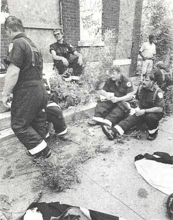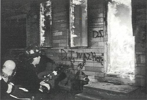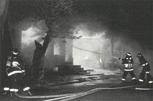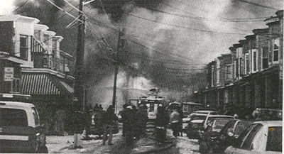 At 9:03 p.m. Engine Companies 7, 9, Ladder Company 3, Squad 1 and Battalion Chief 3 were dispatched to the fire at 618 Mt. Vernon Street. Chief Stinger along with Fire Marshal Leary and County Fire dispatcher Lieutenant Alex Hendry, who was on the scene, were quickly put to work manning the first water line, trying to cut the fire off from a nearby exposure. But the flames had already involved the two buildings and were now jumped the alley way and the third vacant building was now heavily involved. Two fires, one at the 700 block and the other at the 600 block of Mt. Vernon, continued to bum out of control. Firefighters then noticed heavy smoke conditions coming from the 500 block of Mt. Vernon Street. At 9:12 p.m. Companies were dispatched to the 500 block of Mt. Vernon just off Broadway. Engine Co. 106 of Westmont, NJ, Fire Department, Engine Co. 203 from Barrington, NJ Fire Department, Squad Co. 4 along with Camden's Engine Company. 9 and Battalion Chief 6. The first arriving units found heavy smoke conditions coming from a vacant two story dwelling. They were successful in stopping the spread of this fire before it also consumed the vacant building. There were now three major fires along Mt. Vernon Street. The coverup units were still being dispatched to various nuisance fires. At 9:29 p.m. a call for a dwelling fire a 422 South 6th Street. This just around the corner from the now under control fire on Washington Street. Engine Company 1 along with County Coverup Company, Engine Company 106, Westmont, NJ, Fire Department (who was just released from the Mt. Vernon fires) along with County Ladder Company 202, Blenheim Fire Co. along with Camden's Battalion Chief 6. all hands were put to work on this job. Some 4 minutes later at 9:33 p.m. a call came in for a fire in the North Camden Section of the city for 253 Bailey Street. County Engine 206, Delaware Fire Company of Pennsauken, NJ, Township, along with Engine Company 109 Pennsauken Fire Company 2 along with Ladder Company 201 from Blackwood, NJ Fire Department and Camden's Squad 4 and Battalion Chief 4, Joe Marini. Chief Marini being the first on the scene reported that they had a two story attached vacant with fire showing on all floors and would be using all hands. Just as this fire was being placed under control another blaze broke out some seven blocks away in North Camden. Units were dispatched to 626 North 9th Street. Engine Company 11, Ladder Company 201 from Blackwood FD. (who just left the Bailey Street fire) along with Camden Squad Company 4 and Battalion Chief 6. The first arriving units found heavy fire conditions in the rear of a row of three story vacant brick dwellings. As the lines were being stretched, members noticed smoke coming from the rear of a row of vacant dwellings to the left of the fire building that they were working on. This turned out to be a pile of trash and was quickly extinguished. 32