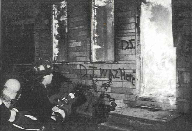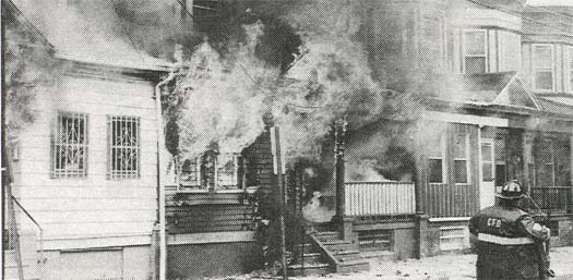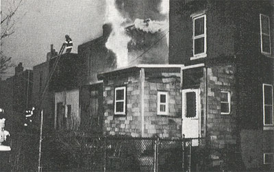 At 8:33 p.m. a call was received for a dwelling fire at 1773 Norris Street in the South Camden section of the city. In this area most of the homes are two story brick rows. Camden City Fire Marshal Herb Leary (FM 1) was the first to arrive, he reported heavy fire coming from a two story dwelling in the middle of a row of ten occupied dwellings. The first arriving Company was Engine Company 108, Collingswood, NJ. They were immediately ordered to use a 2 1/2 inch attack line to make the initial knockdown. And within 5 minutes the heavy fire was completely darkened down as other arriving units came to their assistance. The fire was confined to the one vacant dwelling. Occupied homes on both sides received smoke damage but another job well done. As FM 1 was leaving this fire, a call was received at 8:56 p.m. for a dwelling fire at 7th and Mt. Vernon Streets. Engine Company 107 of Brooklawn, NJ, Fire Co., Camden City Engine Company 8, Ladder Company 102 of Gloucester City Fire Dept., Camden's Squad 2 and Battalion Chief 5 were dispatched. As FM 1 was approaching the fire grounds he could see heavy fire coming from a pair of two story vacant frame dwellings. As the first two companies were now arriving and leading off with their heaviest water line, all hands were now working to try to stop the spread of the fire from some nearby vacant properties. Camden's Deputy Fire Chief Skip Stinger was now arriving on the fire grounds, as he was walking down the street civilians were now pointing to look behind him. Down the next block, there were now flames towering out of a heavily involved two- 31 story twin vacant dwelling some hundred yards from the now working fire. An immediate call was placed for a full assignment to the 600 block of Mt. Vernon Street.