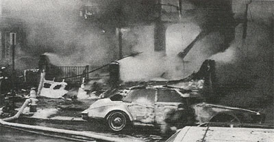 Night '96 Camden New Jersey Fire Department had a busy night as the Little Devils came out on Halloween Eve. The evening started out at 7:07 p.m. with a working house fire at 1042 North 19th Street in the Cramer Hill Section of the city. All hands went to work and had the blaze under control in about 20 minutes. Just as this blaze was being placed under control, Units were dispatched to 112 Stewart Street for an auto junkyard fire. Responding units could see heavy smoke and fire in the sky as some half dozen autos were involved. City firefighters were able to stop the spread of the blaze before any of the exposed homes could be involved.