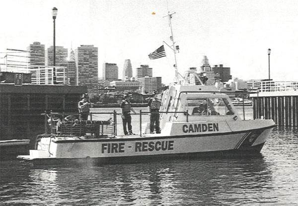 In 1994 The Camden Fire Department acquired a former U.S. Coast Guard "Port and Waterways Boat" (PWB). This boat went through a massive engine rebuild by the fire department apparatus shop and repainted locally by Tiedeken Brothers in South Camden. The pilot house was totally redone by fire department personnel normally assigned to Engine Co. 1. Rather than assigning a U.S. Coast Guard number, the boat was given the name of William Ables to honor the first fire chief of Camden Fire Department. The William Ables measures 33' and 4" with a beam of 11' and 9". It is powered by two 250 hp Caterpillar 3208 diesel engines. A third engine, a 371 Detroit Diesel, is used to power a 500 G.P.M. Fire pump. The William Ables is capable of speeds up to 20 knots (approximately 22 MPH). 19 |