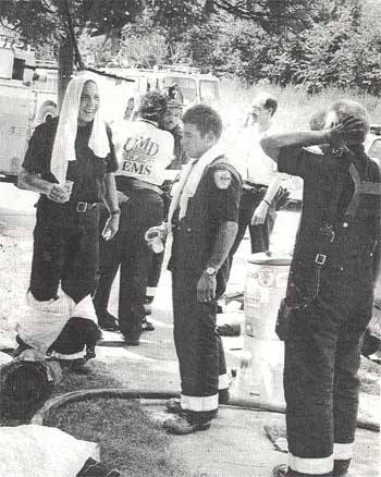 Bridge Collapse Saturday morning May 17, ] 997 started out as a typical mild day. A local trucking firm has just dropped off a huge industrial trash dumpster at a construction site along Camden's Admiral Wilson Blvd. This is one of the main arteries through the City of Camden that connects to the Benjamin Franklin Bridge to Philadelphia. On any weekday morning this highway is clogged with thousands of cars, this morning the traffic was very light. The truck driver was traveling eastbound on the Boulevard with its huge lifting device still raised in the air. What was about to happen was to be known as the miracle on Wilson Boulevard. The truck was approaching the huge 16th Street Foot Bridge, that bridge extends 130 feet across over 8 lanes and has a clearance of 13 feet 7 inches. The truck's boom struck the top of the bridge causing it to come off its mounting and toppled it down across the four lane highway. Traveling along side of the truck at the same time was a woman with four small children in the car. On the other side was a 19 year old man from Philadelphia traveling alone in his 1991 Acura Legend. The impact of the collision blew all the windows out of the truck and ripped the rear of the truck off its frame. The women with the children in the car was hit with the debris flying from the truck and just missed the collapse of the bridge on top of the car. The driver of the other car was not so lucky, the bridge came down on top of his car crushing it down to the dashboard. The roof of the car struck him on the head forcing him downward, while his foot continued to push down on the accelerator. His car was now flattened and raced out of control away from the the women and small children. They were able to stop the car approximately 1/4 mile down the road after it slowed to about 5 MPH. At 11:53 a.m. the 911 Center began receiving dozens of calls about a serious bridge collapse with people trapped. Camden County Fire Radio Center dispatched Engine Co. 6 and Battalion 1 to go eastbound. Engine Co. 9, Rescue 1 and Battalion 2 were dispatched westbound on Wilson blvd. As Battalion 1and Engine 6 approached the entrance to Admiral Wilson Boulevard they were met with a huge traffic back-up and could see the bridge collapsed in the distance. Battalion 1immediately ordered an additional Engine Co. to be dispatched, County Radio sent Engine Co. 7 down the highway in the opposite direction.