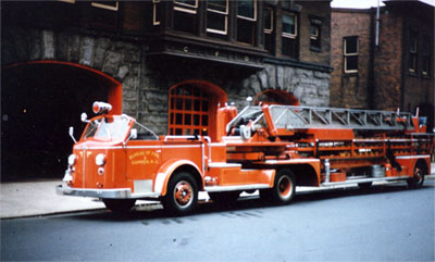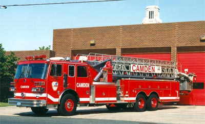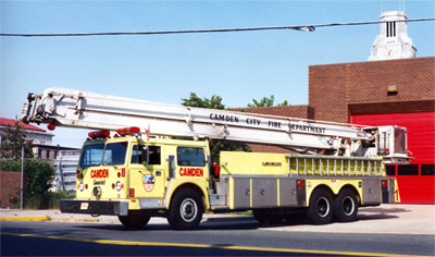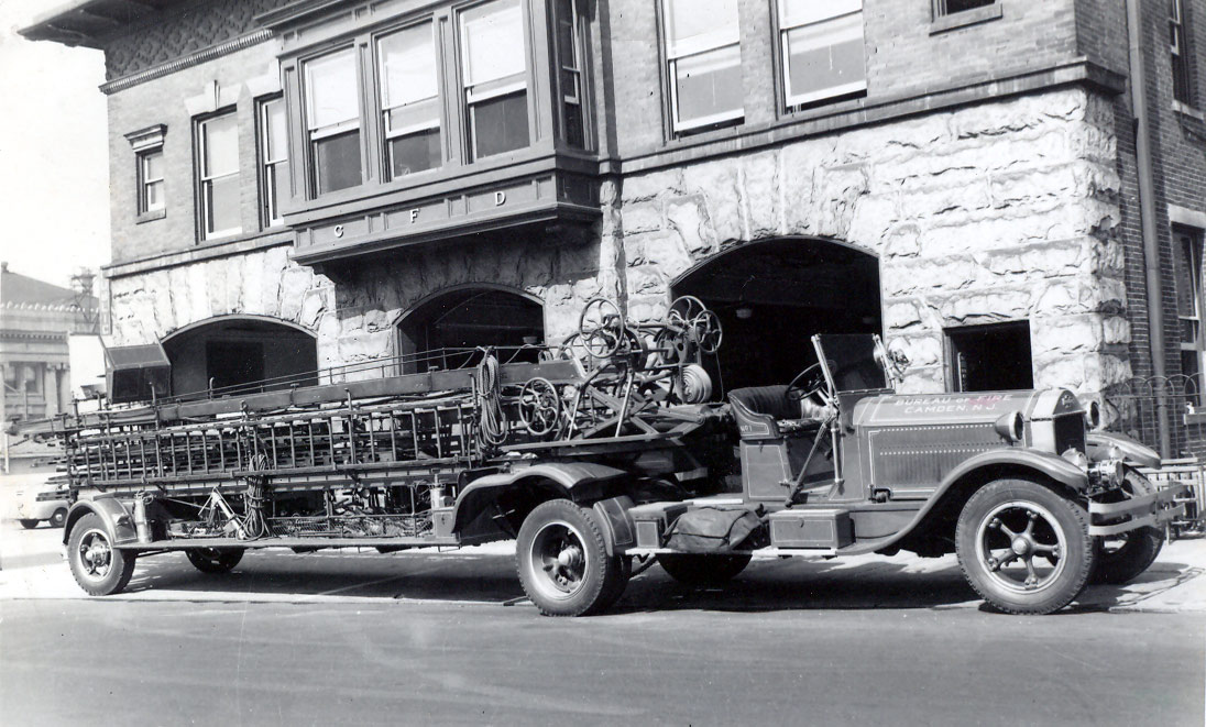 Ladder Company 1 was organized on September 2, 1869 as one of the original units of the paid Camden Fire Department, and entered service on December 7th, 1869 at the old fire headquarters, 29 North 5th Street, at Arch Street in center city Camden. Ladder Company 1 relocated to a new building erected next door at 31 North 5th Street in 1894, and remained at that site until 1930 when it returned to 29 North 5th once again. Ladder Company 1 received its first motorized truck when it was delivered and unloaded on December 8, 1913. It went into service on December 15, 1913. The first run was made on December 18, 1913 at 7:16 PM to 816 Cooper Street, with Steward Bakley driving and William H. Tatem serving as tillerman. Ladder Company 1 remained at 29 North 5th Street until 1961 when the Camden Fire Department moved its headquarters to 3 North 3rd Street, a building which had formerly housed the Camden Courier-Post newspaper. Ladder Company 1 moved to its present location on November 7, 1978 at 2 North 3rd Street, the corner of 3rd and Federal Streets, when the current fire headquarters building was opened. |