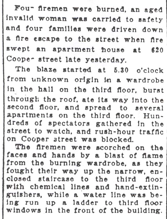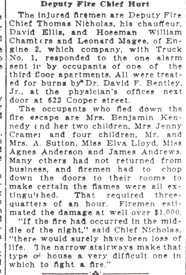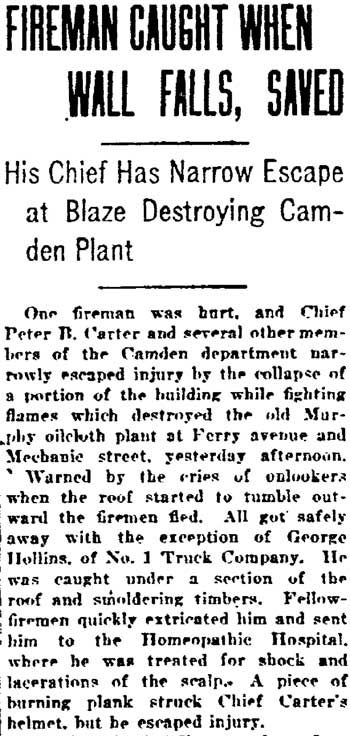 Hayes Engine Company 3 - Engine Company 1 Samuel Lodge - mortimer wilson - William Bogia - Charles Robinson Cooper Hospital - Daniel Scofield - Ladder Company 1 |