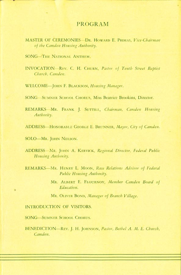 Dedicatorial Exercises of Chelton Terrace April 2, 1944 |