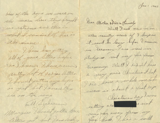 ABOVE- Letter home, written from the front, dated January 1, 1945 |