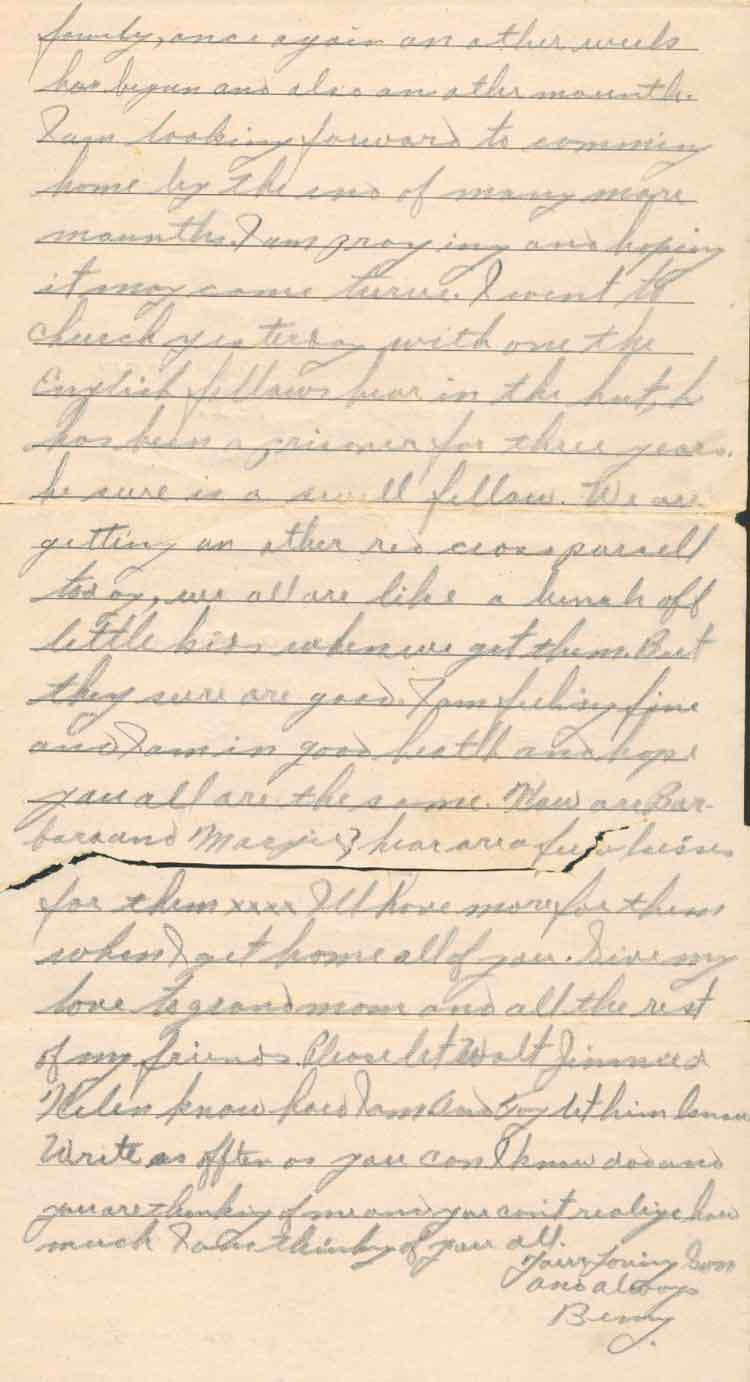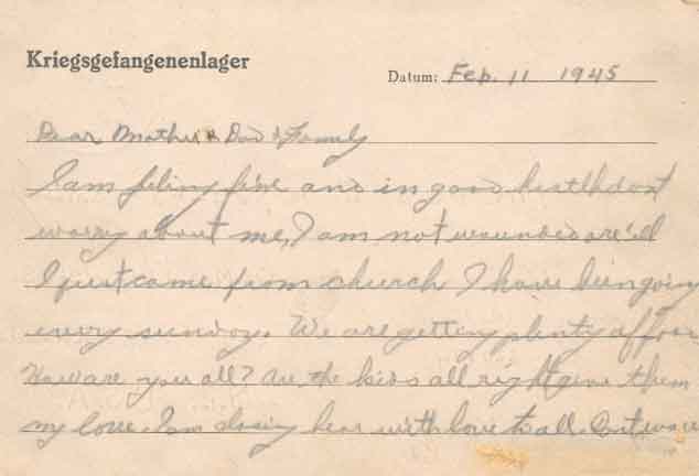 | ABOVE- Letter home, written from the Stalag Luft IVB, dated February 11, 1945 | |
