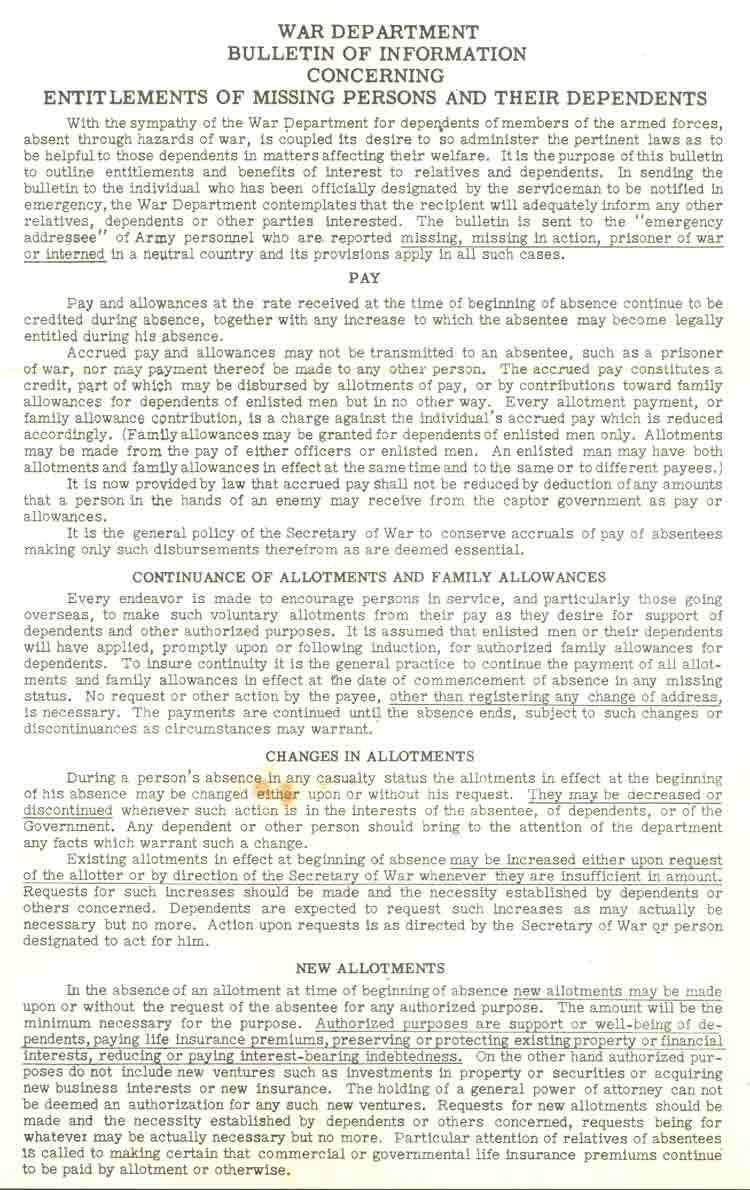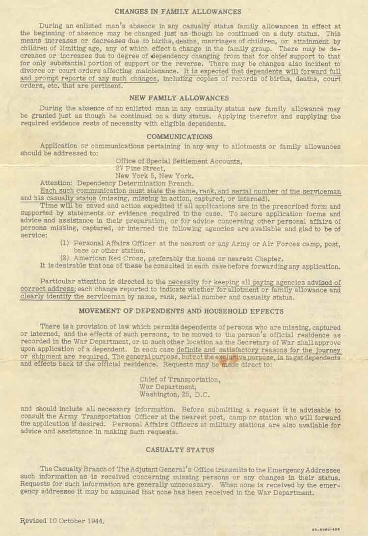 This letter was sent by the Army to Benjamin Wells' family after he was captured |
