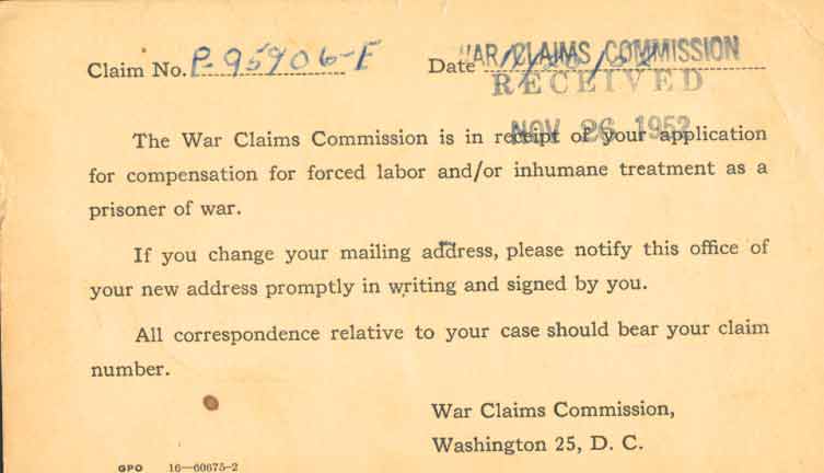 Reparations claim filed for his employ as a laborer while a prisoner |