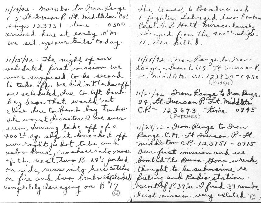 16 NOV 1942 Crash These are pictures of planes that took part in the 16 November 1942 raid according to the list in Wiley Woods' book. Bob Tupa NOTE:- If you look closely under the open window of "Big Emma" you will see the word "IVY". This refers to its pilot Lt. Leroy Iverson.