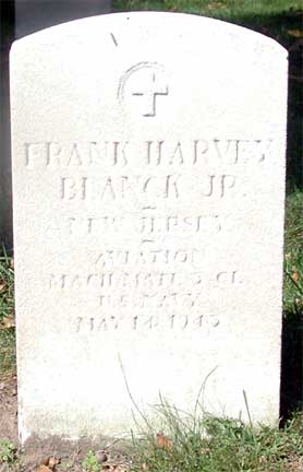 AVIATION MACHINIST'S MATE THIRD CLASS FRANK HARVEY BLANCK, JR ws the son of Frank and Sarah Blank. He enlisted in the U.S. Navy on February 26, 1942 and was trained as an aerial gunner. He served in Florida and was later assigned to the NAS Seattle, where he was engaged in patrolling the Pacific Coast. On May 14, 1943 a Lockheed PV-1 Ventura, Bureau Number (BuNo) 33142, which operated out of NAS Seattle, crashed into Mount Rose, in the Olympic National Forest in Washington State, roughly 40 miles west of Seattle. All five crew were killed; Lt. Byron L. Lough, ACM3C Roy Winston McAllister, Lt. William S. Sledge, AMM3C Frank H. Blanck, and ARM3C Robert S. Youngblood, Jr. Frank Blanck was 19 at the time of his death. He was survived by his parents, and two sisters. His body was returned to Berlin NJ, with a Guard of Honor, and was given a Naval funeral with a firing squad and bugler from the Philadelphia Navy Yard. Interment was made in the National Cemetery at Beverly NJ on June 8, 1943. |