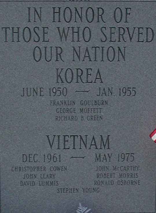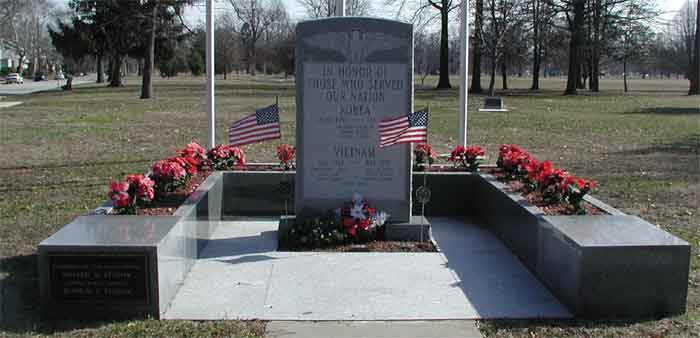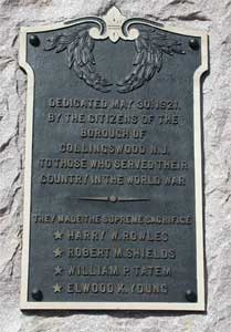 Situated near one corner of Collingswood NJ's historic Knight Park, this monument in inscribed with the names of three men who gave their lives in the service of our nation during the Korean War, and seven who lost their lives in Vietnam.