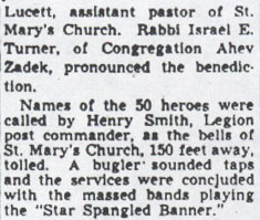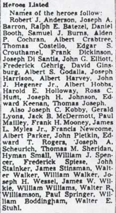Six men from Camden NJ, Frank Ballerino, Michael Carr, Michael Yachus, Stephen V. Koscianski, Lewis Riondino, and Joseph H. Johnson died together when the troop transport HMTS Rohna was struck by a German guided glider bomb and sank of the coast of North Africa. In addition, six other Camden County men, Jacob K. Jenkins and Carl Johanson of Pennsauken, 19 year-old Harry V. Taylor Jr. of Haddonfield, William McKeon of Blackwood, Merl Reagle of Lindenwold, and Elmer F. Day of Merchantville and also were lost that day. In total, 1,015 men were lost, but the story was never told to the families or the general public for over 57 years due to wartime censorship. |
