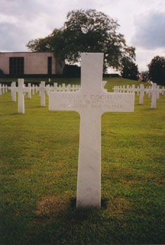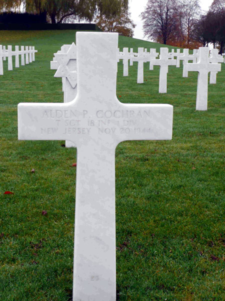 TECHNICAL SERGEANT ALDEN P. COCHRAN, 24, of 327 Mercer Street, Gloucester City NJ, was killed in action on November 20, 1944. Alden P. Cochran had enlisted in the Army in September of 1938. A member of the 1st Infantry Infantry Division. He took part in the invasion of North Africa, where he saw combat against the Vichy French and Germans, and was awarded the Silver Star for heroism. He was with the 1st Infantry Division during the invasion of Sicily, and was with the division at Omaha Beach on D-Day, June 6, 1944, where for his actions he was awarded the Bronze Star. His Bronze Star Citation reads as follows: "…when advance elements of his company encountered stubborn resistance, Sergeant Cochran fearlessly reconnoitered enemy gun emplacements and, maneuvering his men into strategic positions, led a daring and successful assault against the foe. Sergeant Cochran's heroic leadership facilitated seizure of an important objective." Sergeant Cochran was survived by his wife, Madeline, and father, Alexander H. Cochran of Gloucester City NJ. Also surviving were sisters Mrs. Sarah Lex of Somerdale NJ, and Mrs. Doris Hoover of Woodbury NJ. |