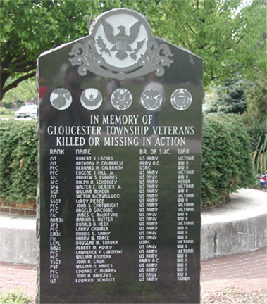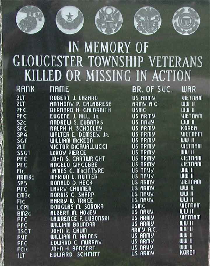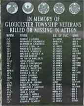 IN MEMORY OF GLOUCESTER TOWNSHIP VETERANS KILLED OR MISSING IN ACTION | |||||