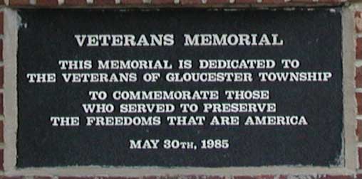 DEDICATED TO THE VETERANS OF GLOUCESTER TOWNSHIP |