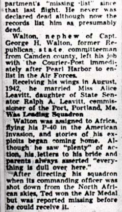 Courier-Post May 18, 1943 When this story ran, Lt. Walton had already been missing 11 days. |