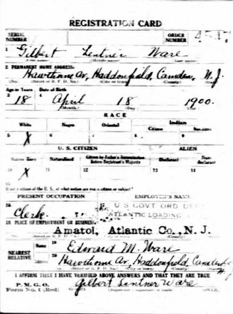 GILBERT LENTNER WARE was born in 1900 in Pennsylvania. He was the
