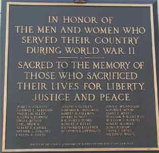 Listed are the names of local men and women who served in the Armed Forces during World War II. Click on pictures for enhanced views. Click here for a picture of names that were blocked out on the far right photo. |