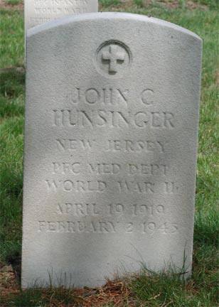 PRIVATE FIRST CLASS JOHN C. HUNSINGER, 23, of the Garden Lake section of Lindenwold NJ was killed in action while serving with the United States Army. After being inducted into the United States Army he was assigned to a medical unit. It was reported that he received a promotion while stationed at Camp Pickett VA in the September 23, 1942 edition of the Camden Couriier-Post. John Hunsinger went overseas, and served with the 26th Infantry Regiment, 1st Infanmtry Division. He was killed in action on February 2, 1945. His death was reported in the Camden Courier-Post April 3, 1945 edition. He was survived by his mother Mrs. Catherine Hunsinger. An address on the Black Horse Pike, Cross Keys NJ, was given in the paper. |