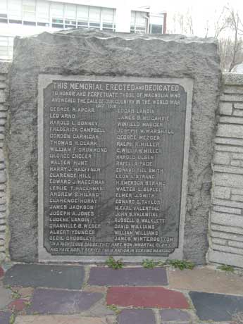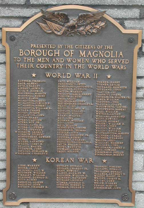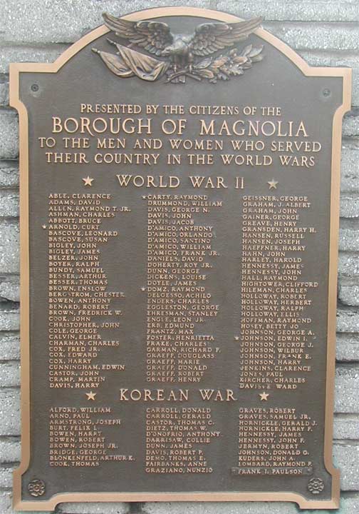 by the Citizens of the BOROUGH OF MAGNOLIA TO THE MEN AND WOMEN WHO SERVED THEIR COUNTRY IN THE WORLD WAR |
