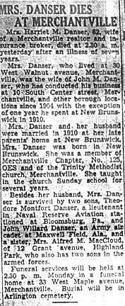 WILLARD DANSER was born in 1919 in New Jersey to John &