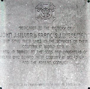 DEDICATED TO THE MEMORY OF JOHN J. SILVER AND FRANCIS J. WEISEMANN WHO GAVE THEIR LIVES IN THE SERVICES OF THEIR COUNTRY IN WWII AND IN TRIBUTE TO THE SONS AND DAUGHTERS OF DELAIR WHO SERVED THEIR COUNTRY IN WWII AND THE KOREAN CONFLICT. |