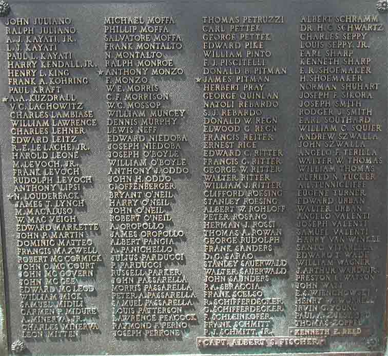 Six men from Camden NJ, Frank Ballerino, Michael Carr, Michael Yachus, Stephen V. Koscianski, Lewis Riondino, and Joseph H. Johnson died together when the troop transport HMTS Rohna was struck by a German guided glider bomb and sank of the coast of North Africa. In addition, six other Camden County men, Jacob Kessler Jenkins and Carl Johanson of Pennsauken, 19 year-old Harry V. Taylor Jr. of Haddonfield, William McKeon of Blackwood, Merl Reagle of Lindenwold, and Elmer F. Day of Merchantville and also were lost that day. Many other men from South Jersey were killed as well. In total, 1,015 men were lost, but the story was never told to the families or the general public for over 57 years due to wartime censorship. |
