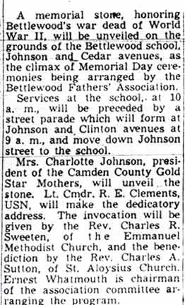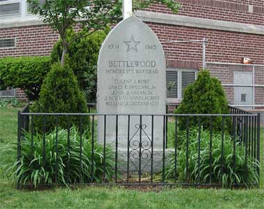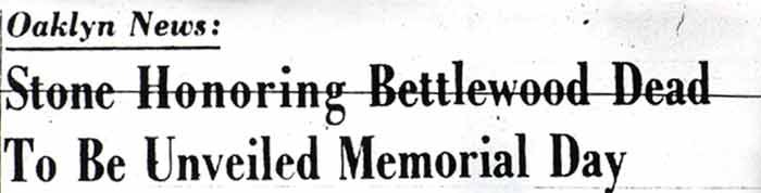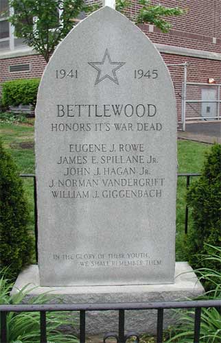 Cedar and Johnson Avenues- The Bettlewood monument was dedicated on Memorial Day, 1949. |