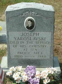 SEAMAN SECOND CLASS JOSEPH YAROSLAVSKI was born in 1920. He was the son of Mr. and Mrs. Dmitri Yaroslavski of Hay Street in Winslow Township NJ. He attended Hammonton (NJ) High school and the Camden County Vocational and Technical School before entering the Navy in June of 1942, after possibly having served in the United States Merchant Marine. He was serving as an Able Seaman on the USS William P. Biddle APA-8 in August of 1942, and was transferred to the USS Elizabeth C. Stanton AP-696 on September 4. The Biddle and the Stanton were U.S. Army transports. Joseph Yaroslavski received his basic traing while assigned to the Biddle, which was then stationed at Portsmouth, Virginia. He was subsequently assigned to the USS Elizabeth C. Stanton crew, and took part in her first mission, sailing from Norfolk on October 24, 1942, USS Elizabeth C. Stanton AP-696 quickly landed her troops and equipment for the assault on North Africa on 8 November and got underway for the States within the week. Joseph Yaroslavski was given the rank of Seaman 2nd Class while a member of the USS Elizabeth C. Stanton AP-696 crew. He was subsequently assigned to another new ship, LST-342, in December of 1942.