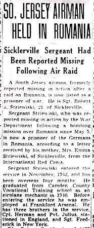 PRIVATE JULIUS STRIEWSKI, was the son of Charles & Emma Striewski of New Brooklyn Road in Winslow Township NJ. A 1942 graduate of Lower Camden County Regional High School, he had worked at Armstrong Cork in Camden NJ prior to his entry into the Army in June of 1943. Julius Striewski went overseas in December of the 1943. He was assigned to the 301st Infantry Regiment, 94th Infantry Division. Three other Striewski brothers were in the service by May of 1944, Robert with the Army Air Force, and Herman and Frederick with the Army. The 94th
