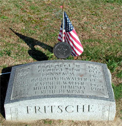 LIEUTENANT GEORGE J. FRITSCHE JR, was the son of George and Edna Fritsche. His father was a salesman for a bakery. He was born in Pennsylvania in 1910. In 1920 the family was living at 4417 Master Street in Philadelphia PA. Sometime in the 1920s the family moved to Woodlynne NJ, and by 1930 the family owned a home at 106 Cedar Avenue. George Jr. was working as a repair mechanic of washing machines, according to the 1930 census. Well known as an aviation enthusiast, he joined the Army in 1934. By 1943 he had married, and lived with his wife Kathryn at the Cedar Street address, his parents having relocated to Cecil NJ, where they operated a clam bar. George Fritsche received his early flight training at Mitchell Field NY. He became an expert in the technique of flying gliders. He served at Dunnellen Field FL as as the flight officer at a glider school. His last posting was with a troop carrier squadron operating at Lawson Field, Fort Benning GA. Lieutenant Fritsche was killed on November 24, 1943, when the transport plane he was flying crashed during a storm near Tamaqua PA. The flight had originated at Lawson Field. Seven men were lost in the crash, two other men in the plane survived. Lieutenant George Fritsche Jr. survived by his wife, parents, sisters Ruth Dempsey and Dorothy Walker, both of Woodlynne, and brothers Frederick Fritsche of Westmont, and Richard Fritsche of Bellmawr. He received a military funeral on December 1, 1943. A mass was said for him at Sacred Heart Church on Broadway and Ferry Avenue in Camden NJ. He is memorialized on the Woodlynne, NJ War Memorial. George Fritsche Jr. was buried at New St. Mary's Cemetery in Bellmawr NJ, where today he rests with his parents. |