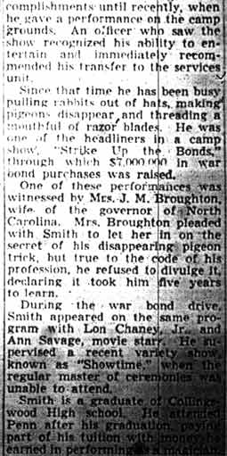 Carolina on War Bond Drives with many stage and screen notables,, and